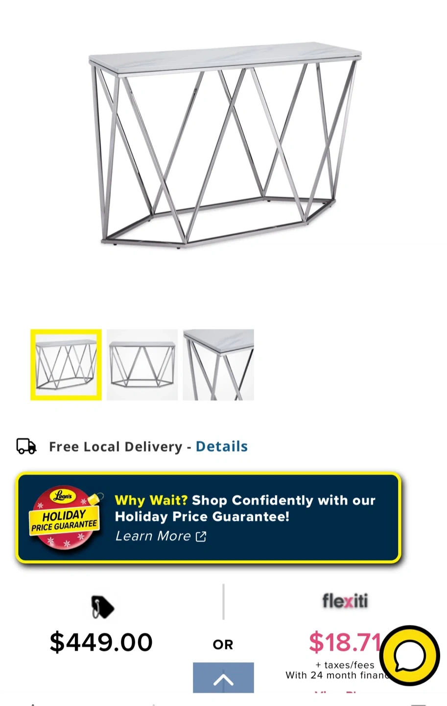 Selling a stylish console table that will add a touch of modern elegance to your home! The table features a beautiful marble top and a sleek metal base. It's in great condition and ready to be the perfect accent piece in your entryway or living room. Originally bought for $449