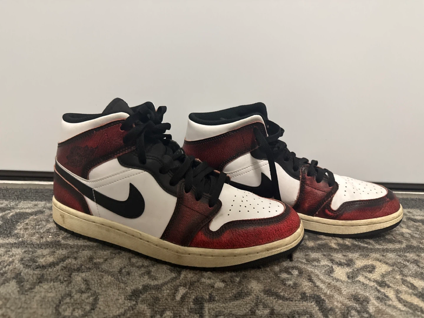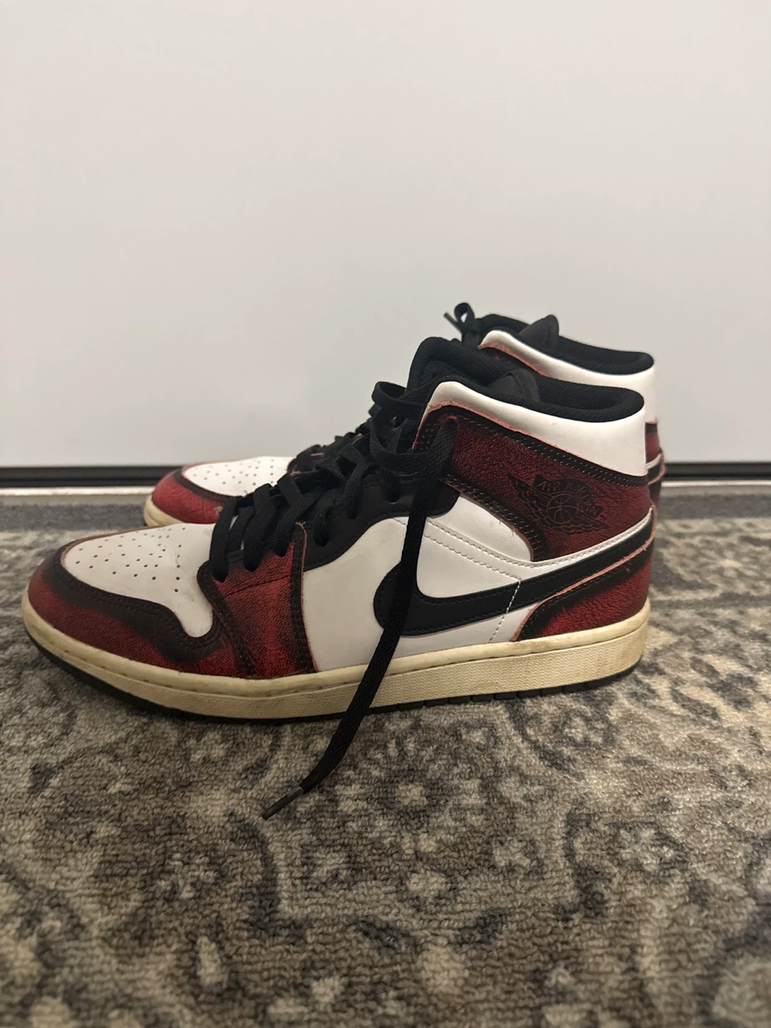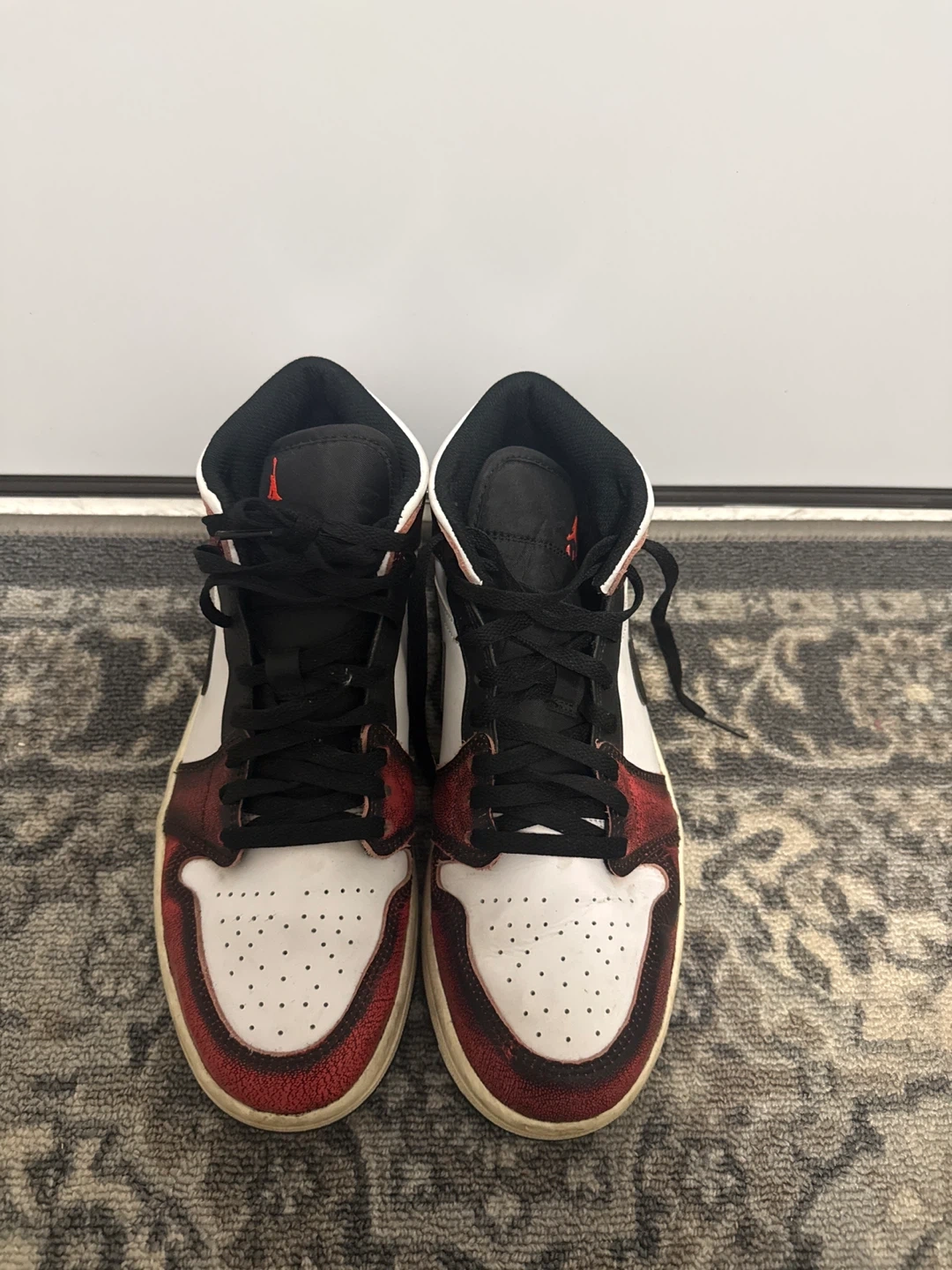 Selling a pair of Nike Air Jordan 1 Mid sneakers. They're in used condition, as you can see from the photos, but still have lots of life left! Great for everyday wear or hitting the court