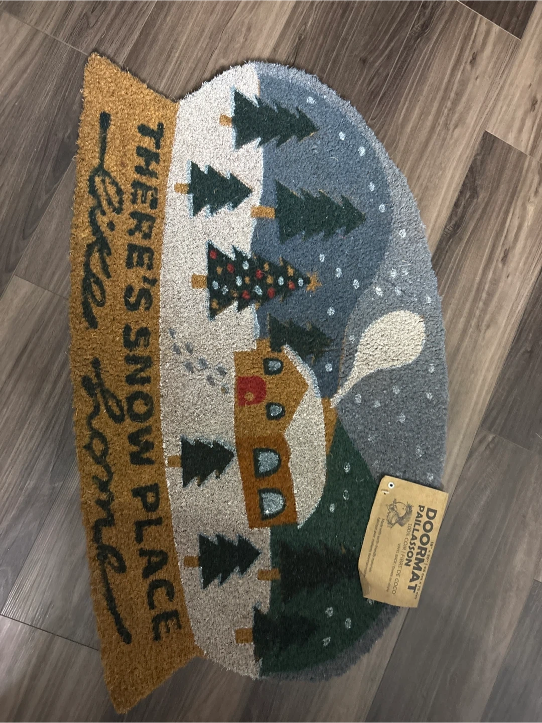 I'm selling a brand new snow globe holiday theme Paillasson doormat! It's made with earth-friendly materials and measures 18" x 30" / 45 cm x 75 cm. Super cute for the winter season!