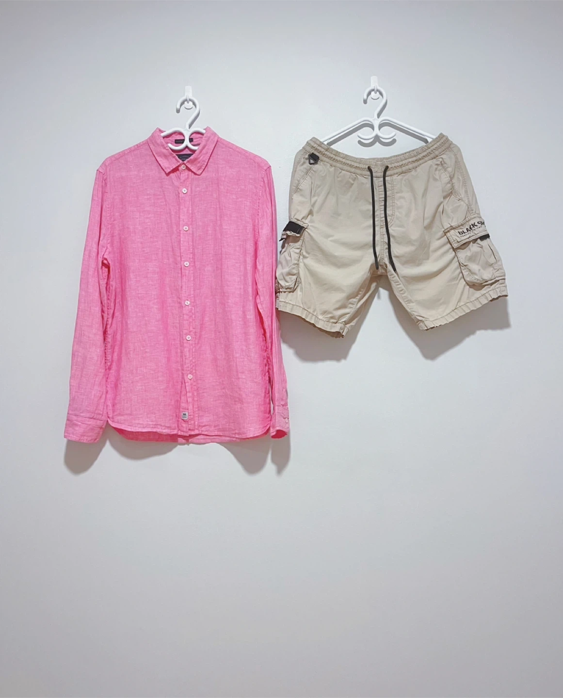 Men’s Pink Linen Shirt & Black Score Cargo Shorts