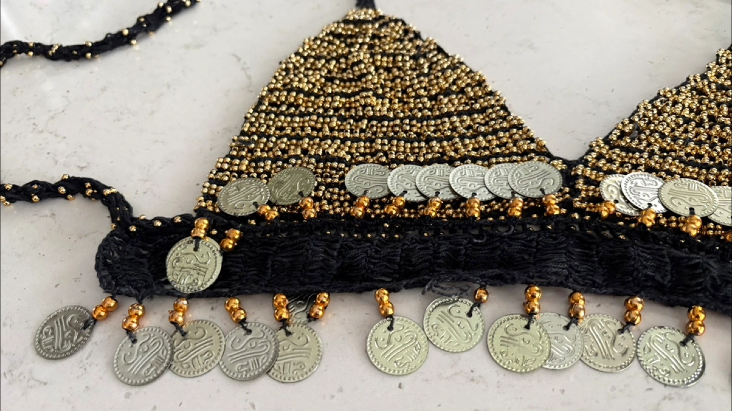 Pls see measurements with the measuring tape , one dangling coin is missing , can move the end one to fill in the space , otherwise in excellent new condition.