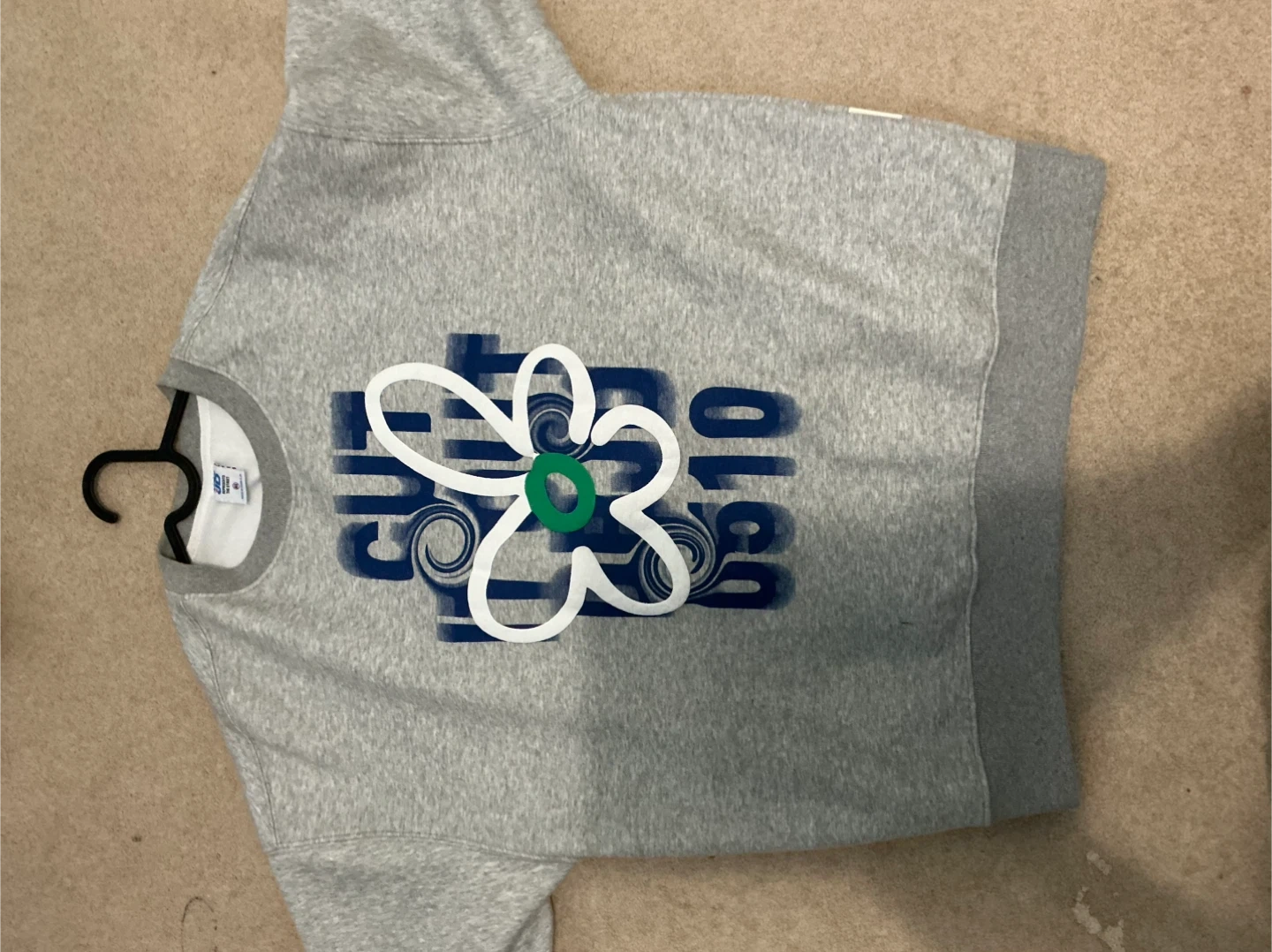 Selling a grey CULT Gaia crewneck sweatshirt. The sweatshirt has a flower design on the front. It's in great condition and ready for a new home!