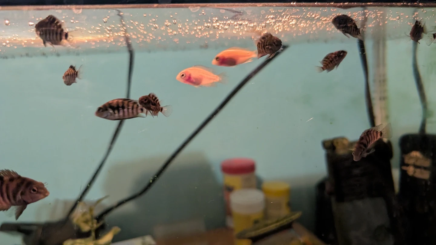 African Convict Cichlids fish babies 1 inch in length and young adult fish 2 to 3 inches in length. Local pickup only $2 per fish or 13 for $20