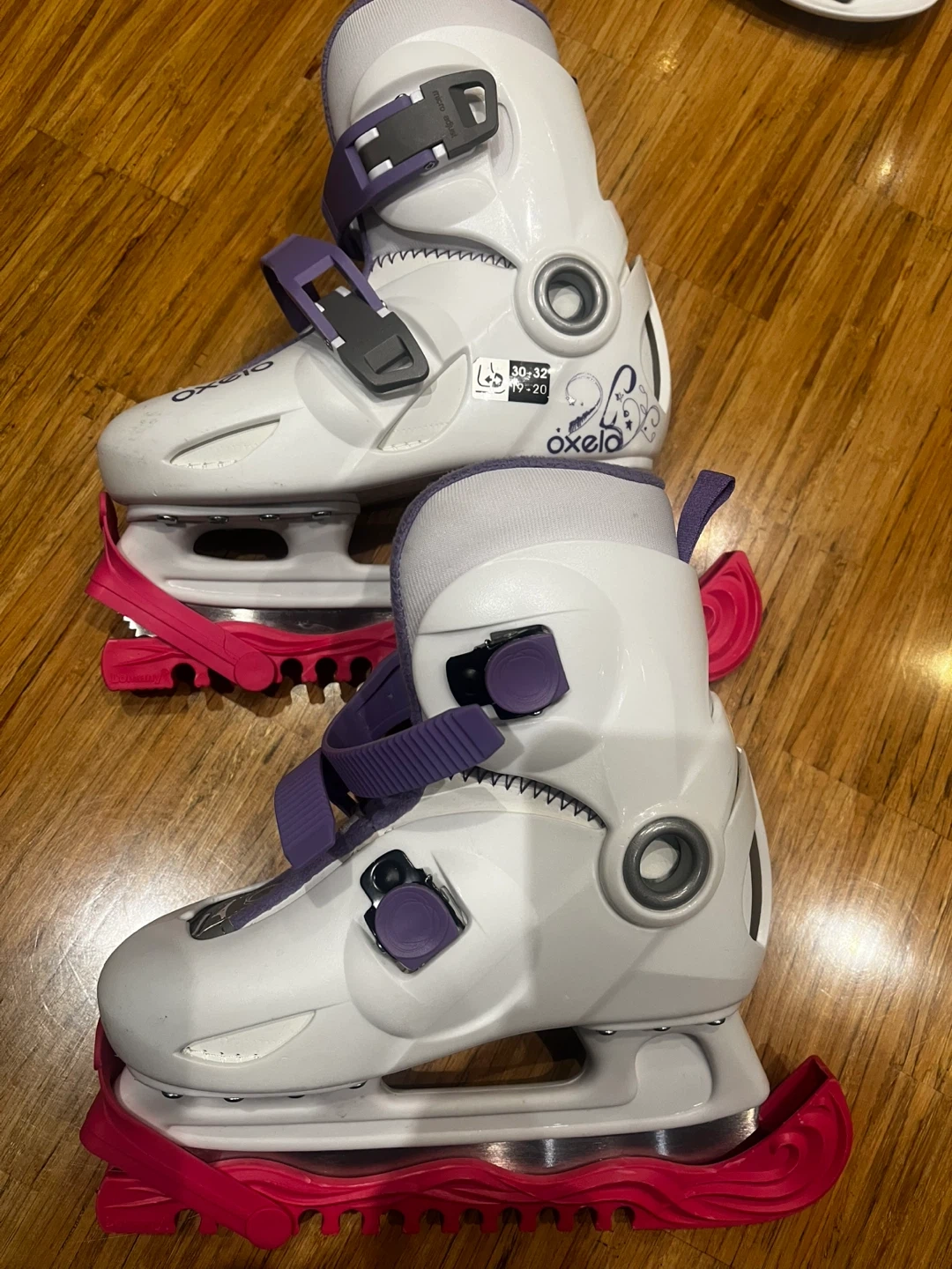 Selling a pair of Oxelo kids' adjustable ice skates in size 30-32. They are in great shape and ready for some fun on the ice!