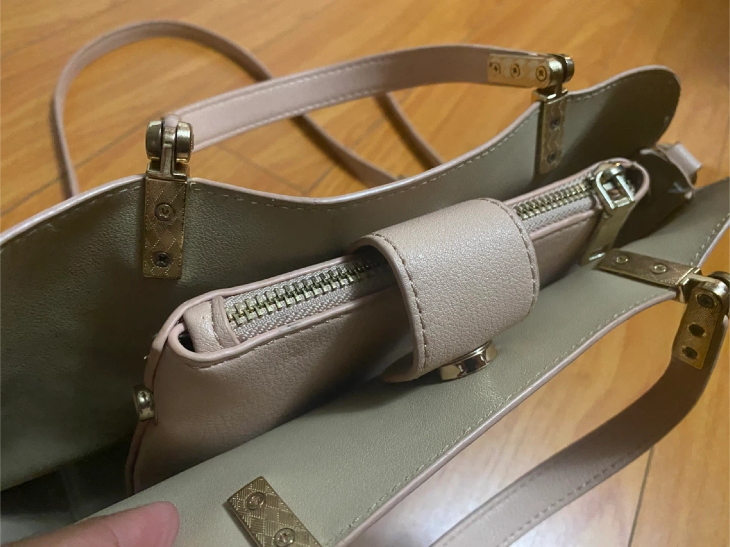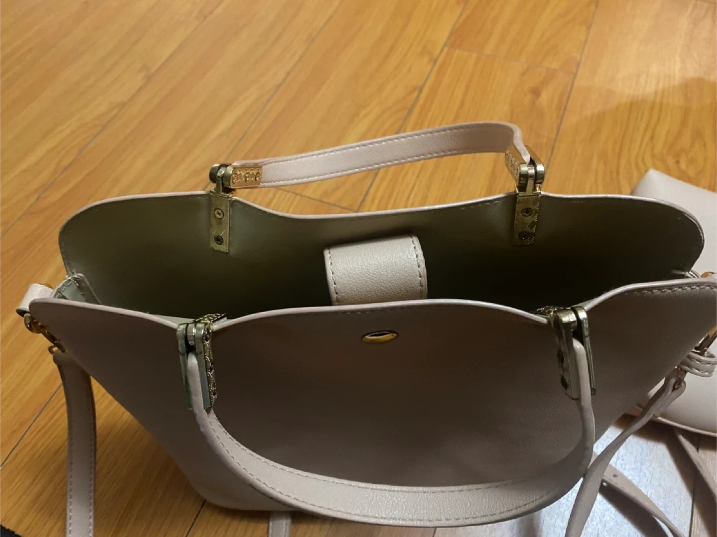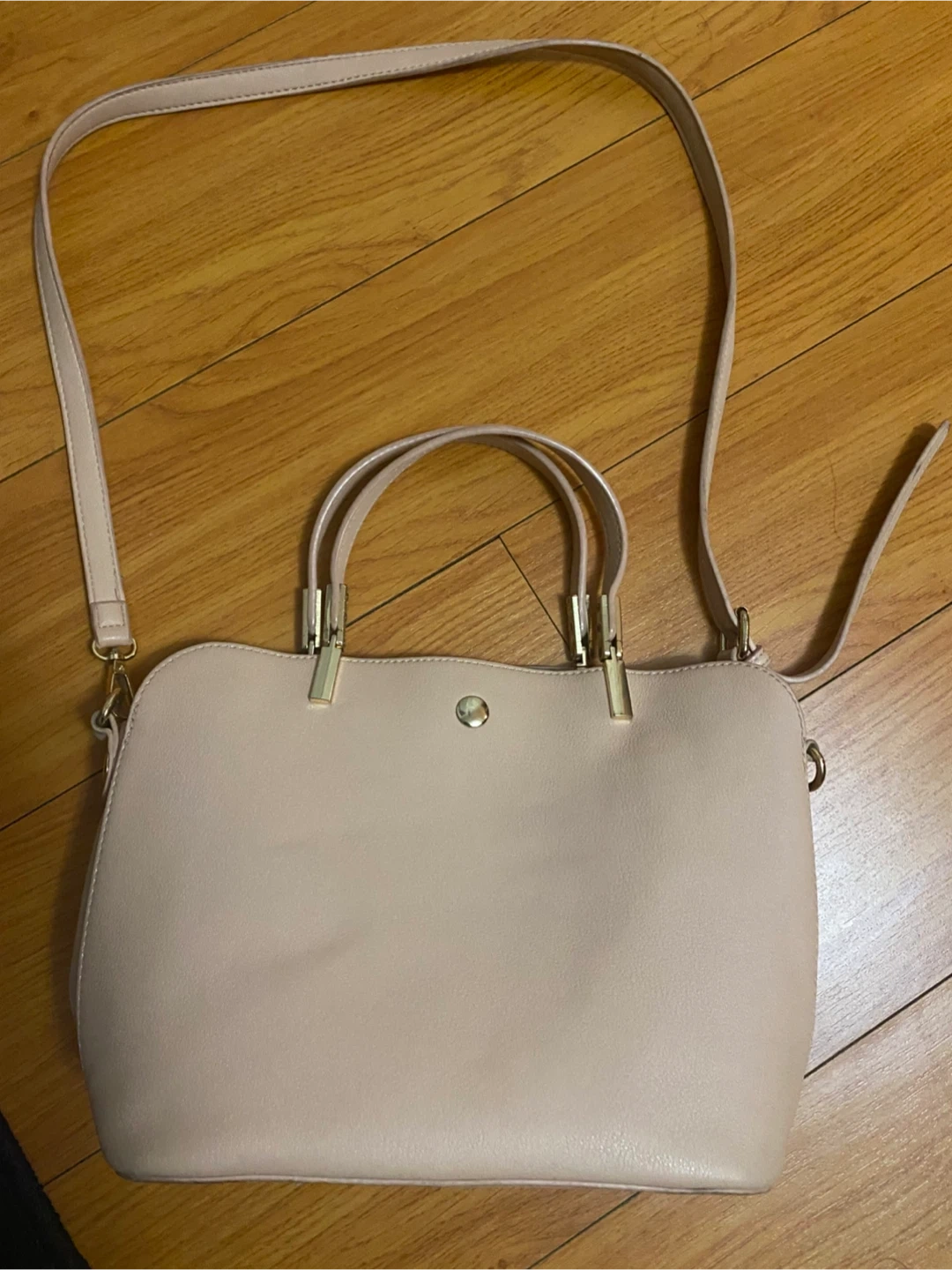 Here's a lovely light pink tote bag, perfect for everyday use! It comes with a matching crossbody strap for added versatility. The bag is in great condition and ready for a new home.