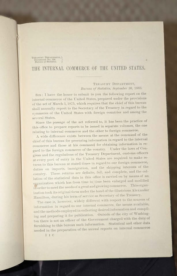 Rare 1884 Government Printing Office hardcover report “Report on the Internal Commerce of the United States” By Joseph Nimmo Jr., Chief of the Bureau of Statistics, Fiscal Year 1881–1882
