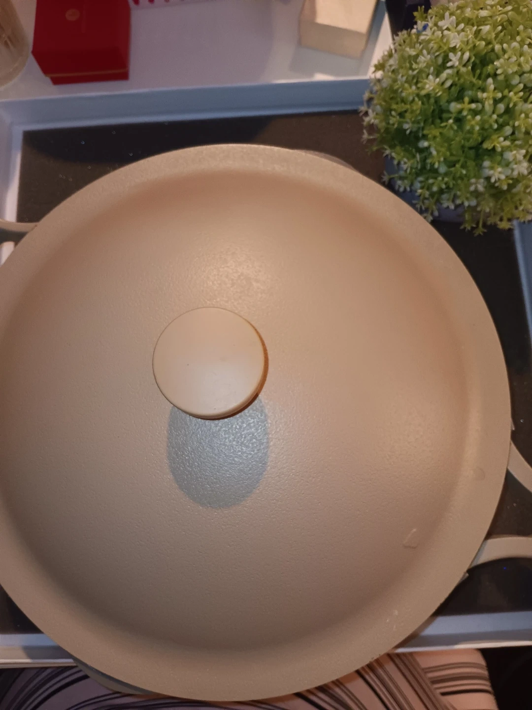Selling an Our Place pot with a lid. It is in used condition with some signs of wear, but it's still functional and ready for a new home!