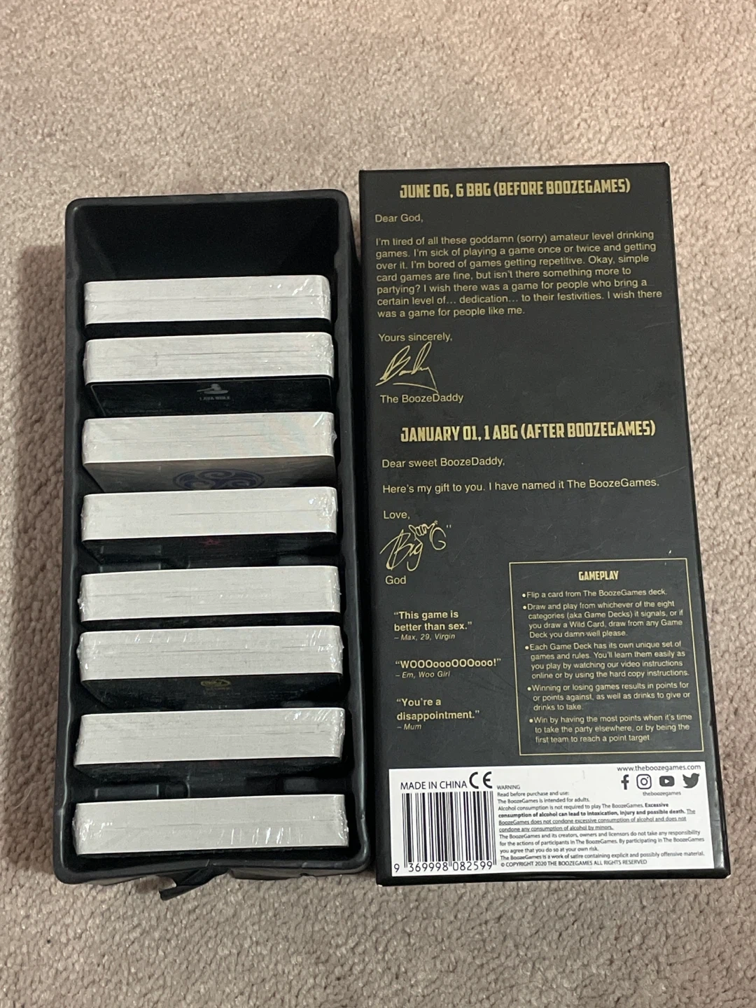 Looking to spice up your next get-together? The Booze Games card game is a fun way to get the party started! Flip a card from The BoozeGames deck, which signals or directs one of the eight categories. Win by having the most points when it's all said and done, or win by being the first team to reach a point target!