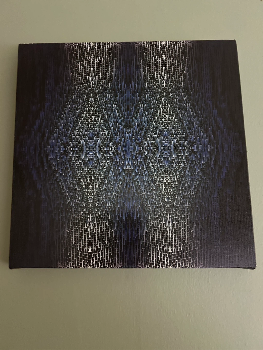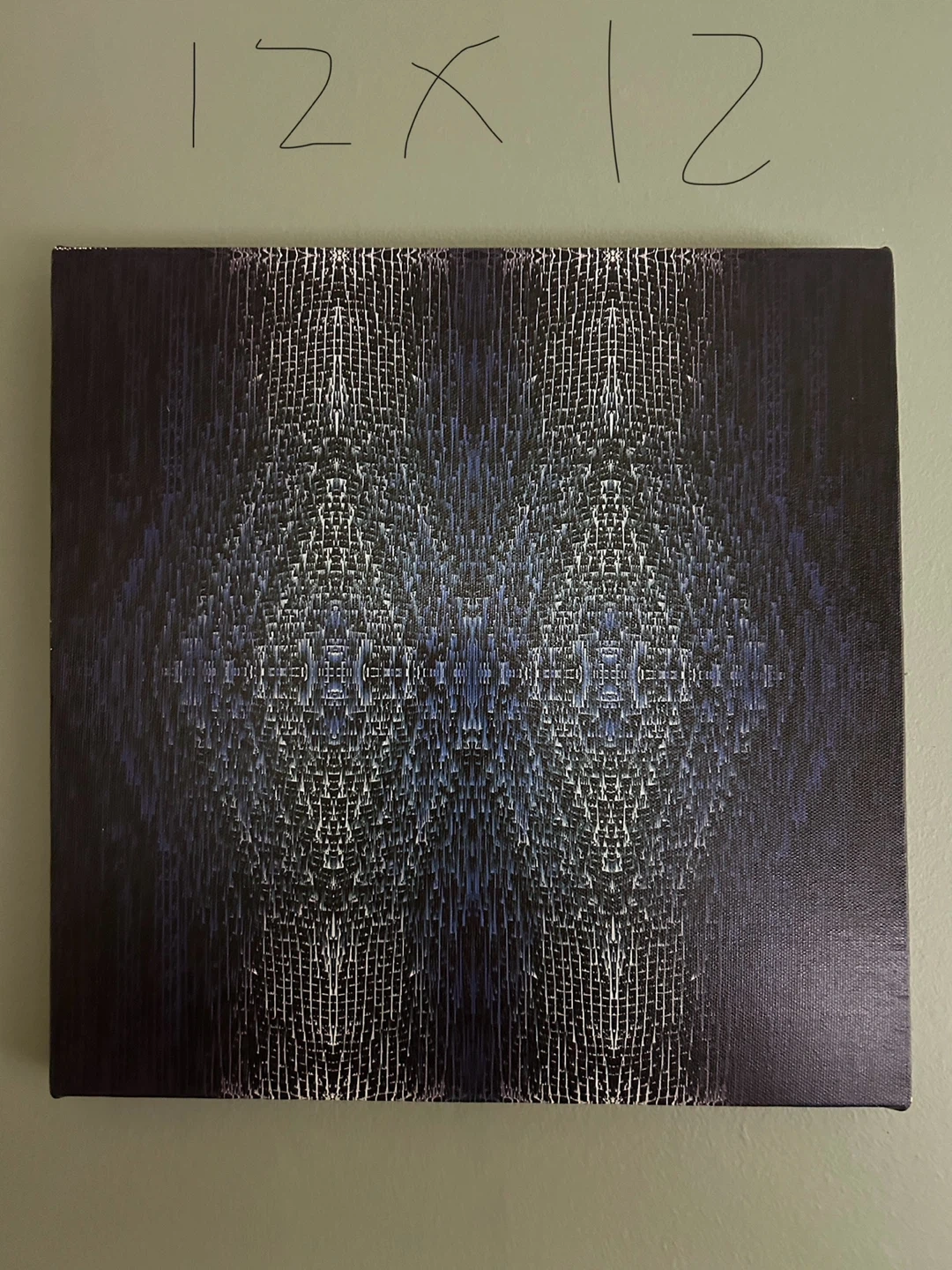 I'm selling an abstract art canvas that measures 12x12. The colours are primarily black and blue. It's in great condition and ready to hang in your home! Sold by artist