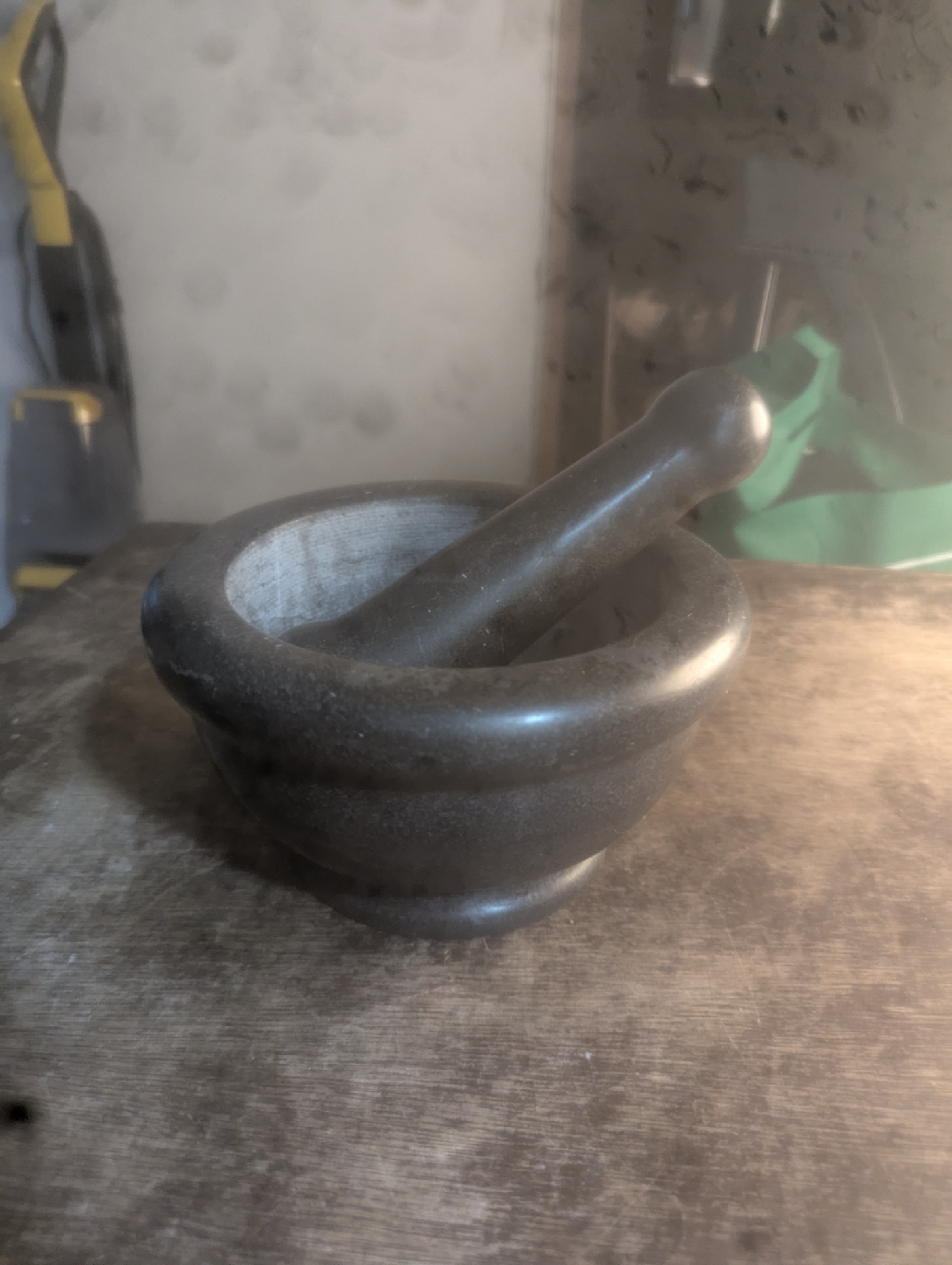Selling a mortar and pestle set, perfect for grinding herbs and spices. It's in great condition and ready for a new home!