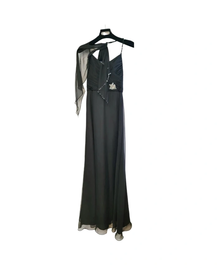 The asymmetric strap adds a modern touch, and the included chiffon shawl provides versatile styling for weddings, formal events, and evening occasions.