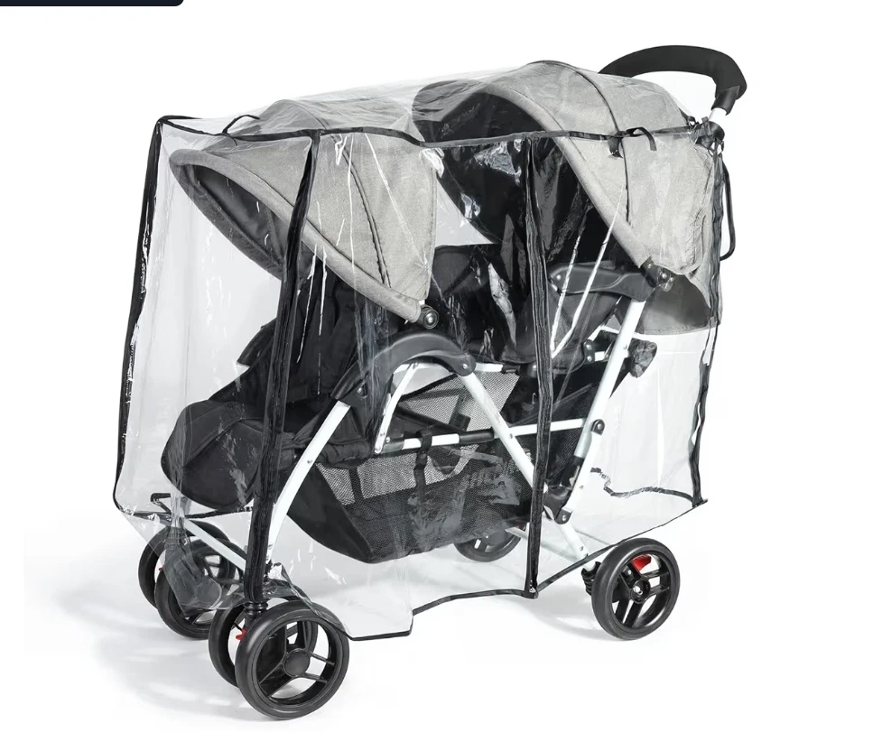 IvyWind Double Stroller Rain Cover, Universal Stroller Cover for Tandem Strollers, Breathable Weather Shield for All-Weather Protection from Rain Snow Dust Wind.