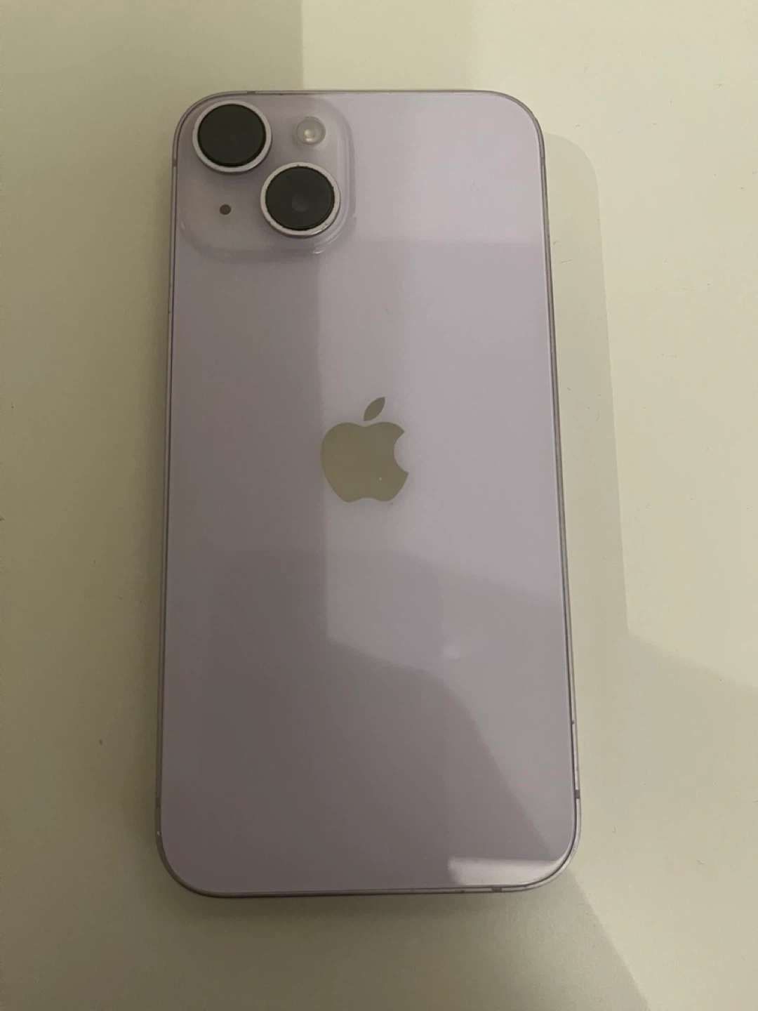 Selling my iPhone 14 in purple with 128GB of storage. It's in great condition and comes with a black protective case
