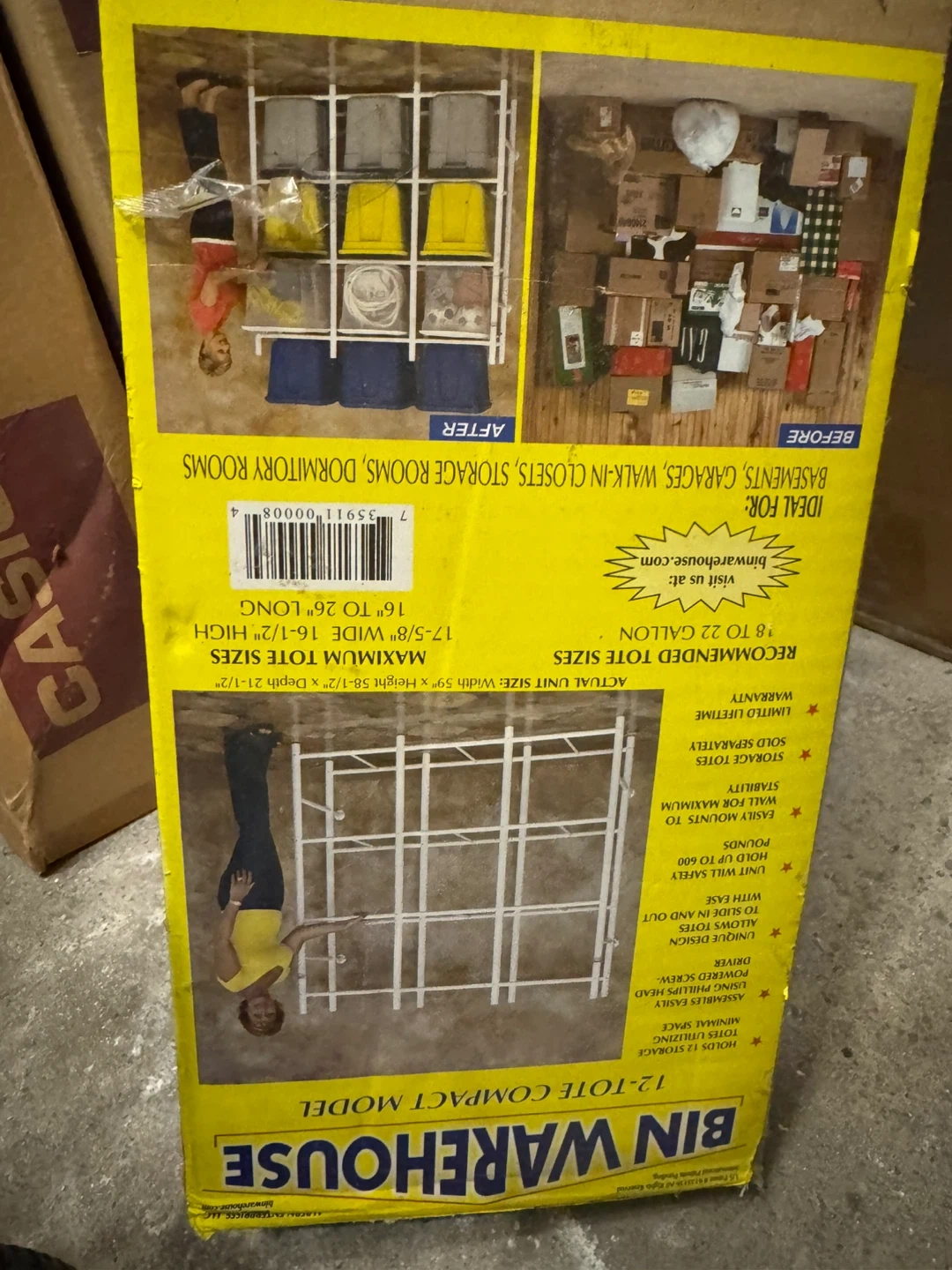 Selling a Bin Warehouse 12-Tote Compact Model. It's ideal for basements, garages, walk-in closets, storage rooms, and dormitory rooms.