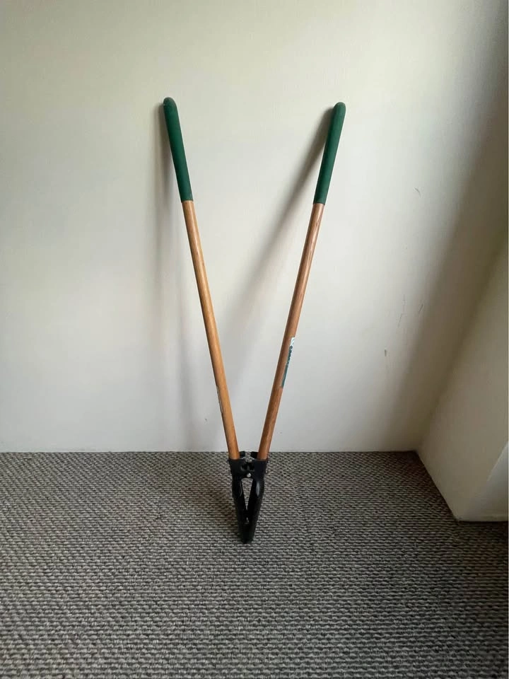 Trusted Ames brand post hole digger — solid wood handles and steel blades built to last. Great for digging post holes, fence footing, or planting trees and shrubs.