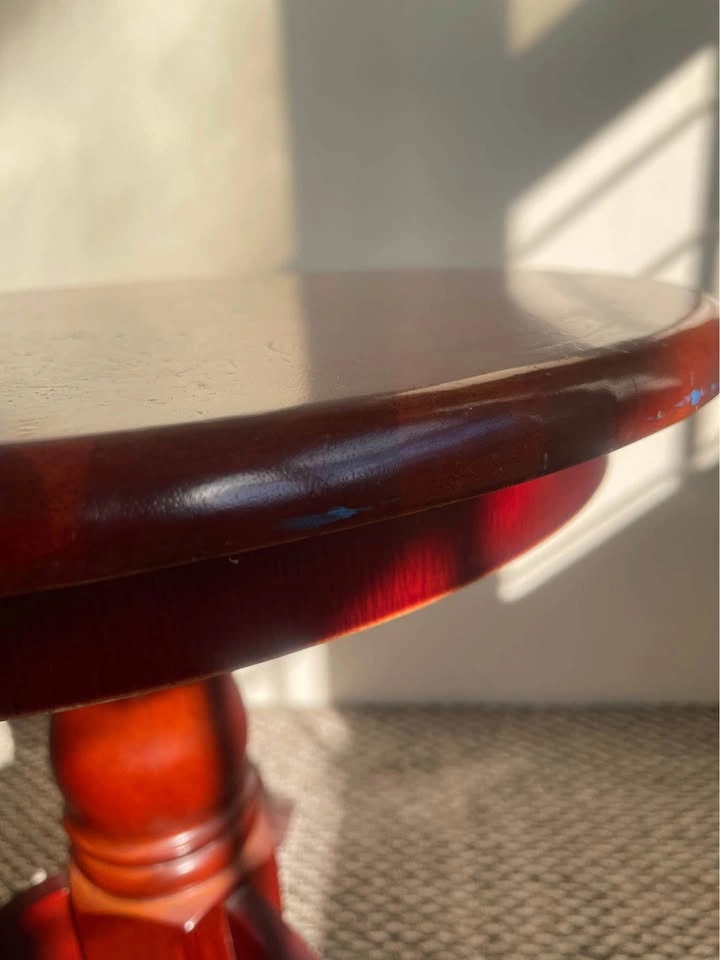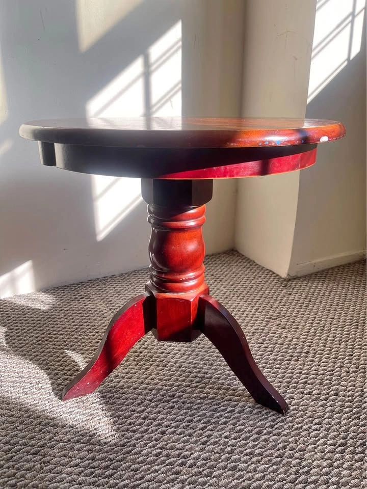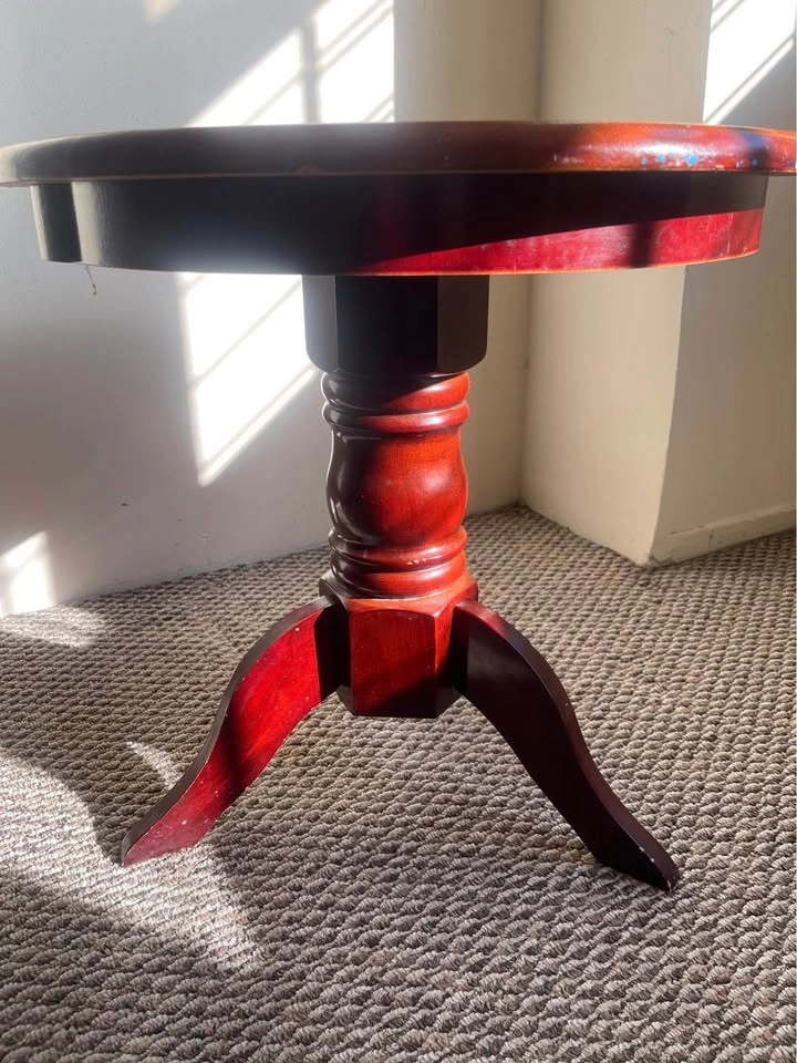 Timeless round accent table with a rich cherry finish. Sturdy and solid — perfect as a side table, lamp stand, or entryway accent piece.