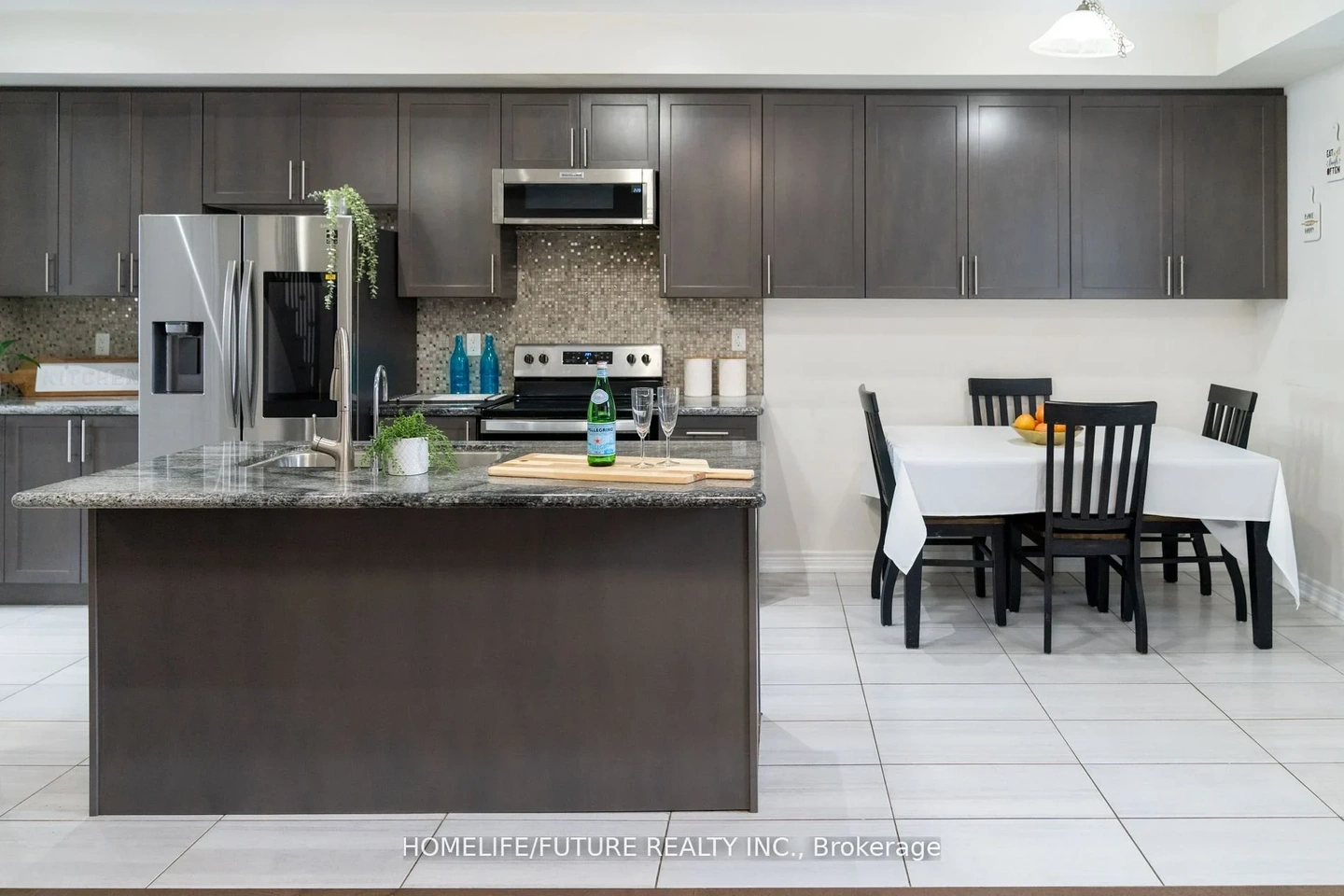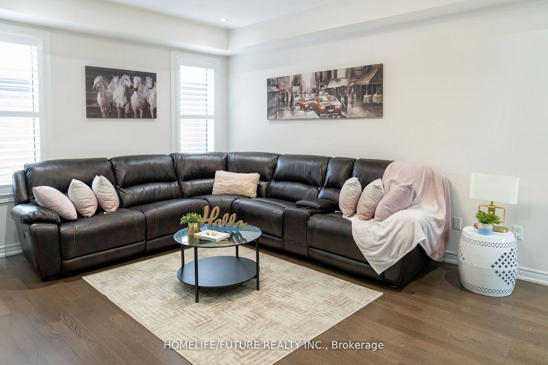 Exquisite 5 Year-Old Freehold Townhome, Approximately 2,500 Sq ft Of Refined Living Spaces. Double Car Garage Complemented By Meticulously Landscaped Interlock Gardens, Enhancing Curb Appeal. Grand Entrance: Step Through The Double Door Into A Sunken, Spacious Foyer. Sophisticated Open Concept Design Featuring Soaring 9ft Ceilings And Hardwood Floors That Extend Throughout The Gr Room, Main Floor & Upstairs Hallway. Chief's Kitchen Boasting Central Island, Gleaming Granite Countertops, Chic Backsplash, And Premium Stainless Steel Appliances. Elegant Dining Area. Ideal For Entertainment With Recess Pot Lighting On The Main Floor And Master Suite. Luxurious Primary Suite. Complete With A Spa-Inspired Ensuite And An Expansive Walk-In Closet - Premium Upgrades Throughout All Bathrooms. Enhanced Details Include Iron Picket Staircases And Custom California Shutters On All Windows. Impressive Finished Basement. Offers Bathroom With A Modern Standing Shower & A Dedicated Theatre Room.