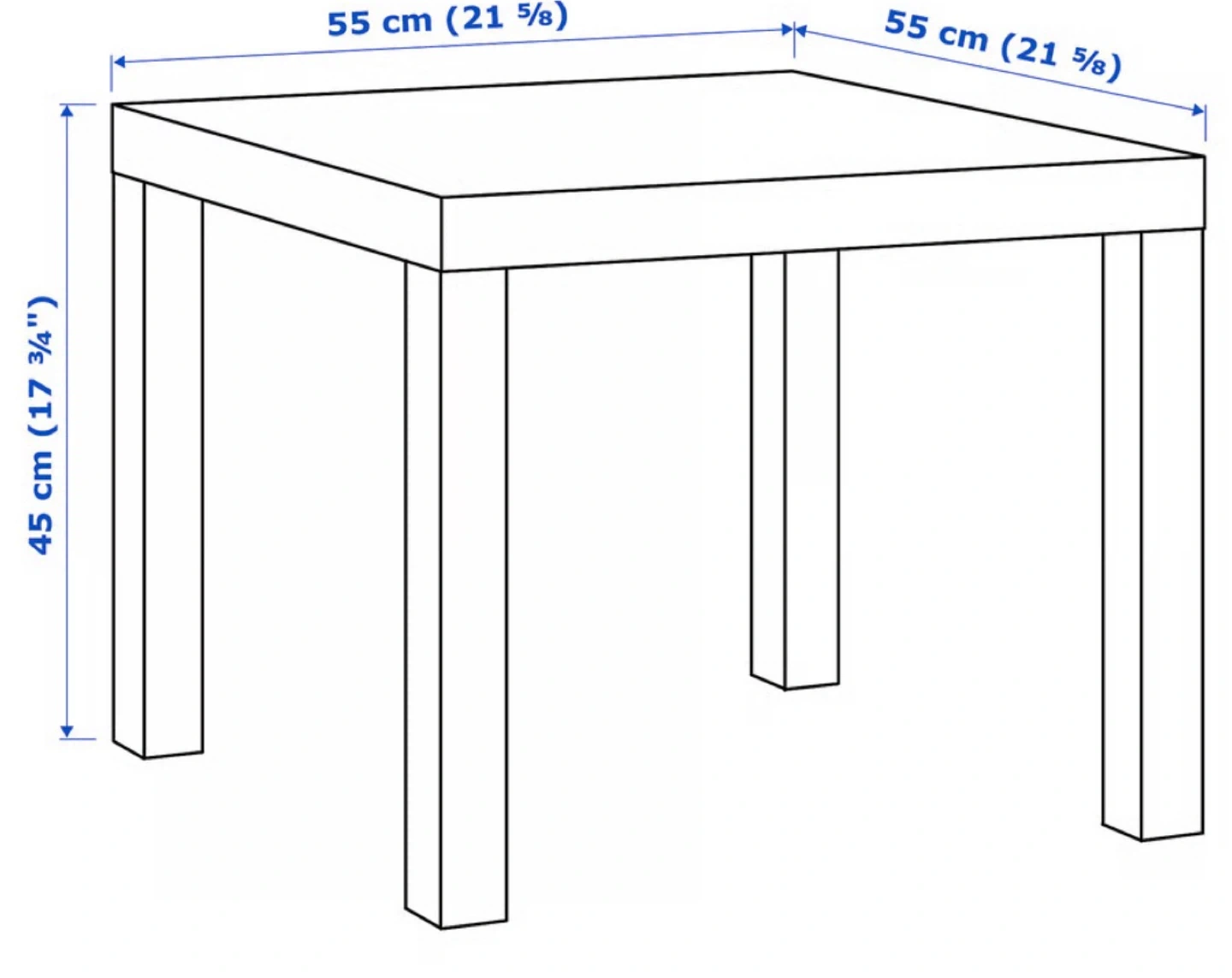 Selling an IKEA Lack side table in black-brown. It's a simple and sturdy table with a convenient shelf underneath for storage. Dimensions are 55x55 cm (21 5/8x21 5/8 "). Recently bought (2 months ago). Like new with no spots or scratches). House has no pets/no smoking.