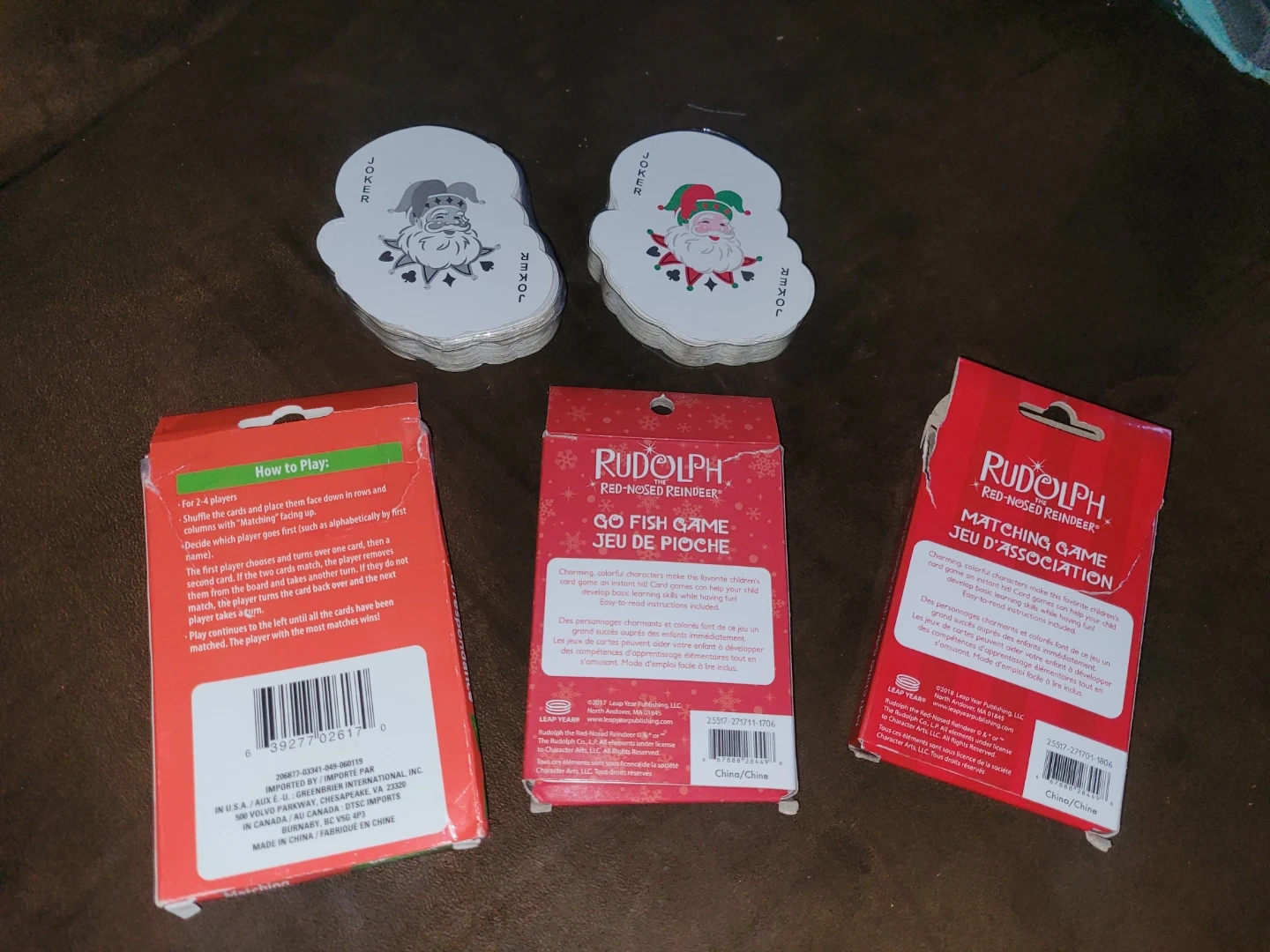 Get ready for some holiday fun with these adorable Rudolph-themed card games! Included are the Go Fish game and a Matching Game, perfect for kids aged 4 and up. These games are in excellent condition and ready for a new home for some festive family fun also adorable Santa shaped cards.