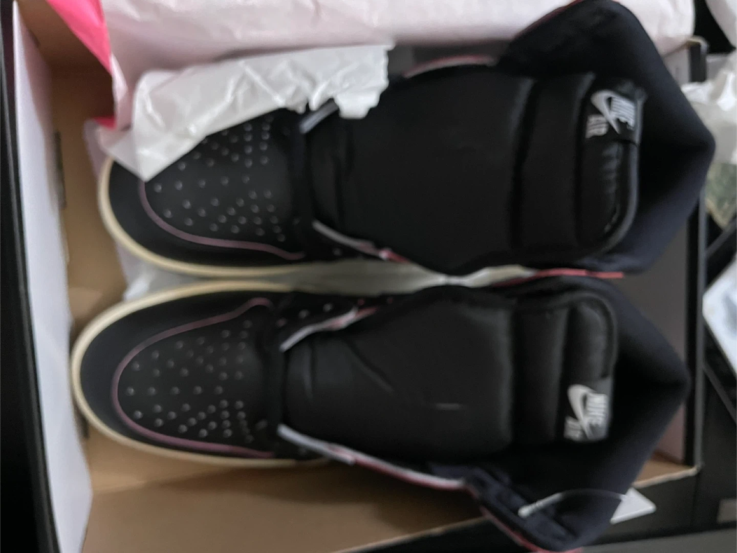 Selling a pair of Nike Air Jordan 1 Retro High OG sneakers in black with pink accents! These shoes are in great condition and come with the original box