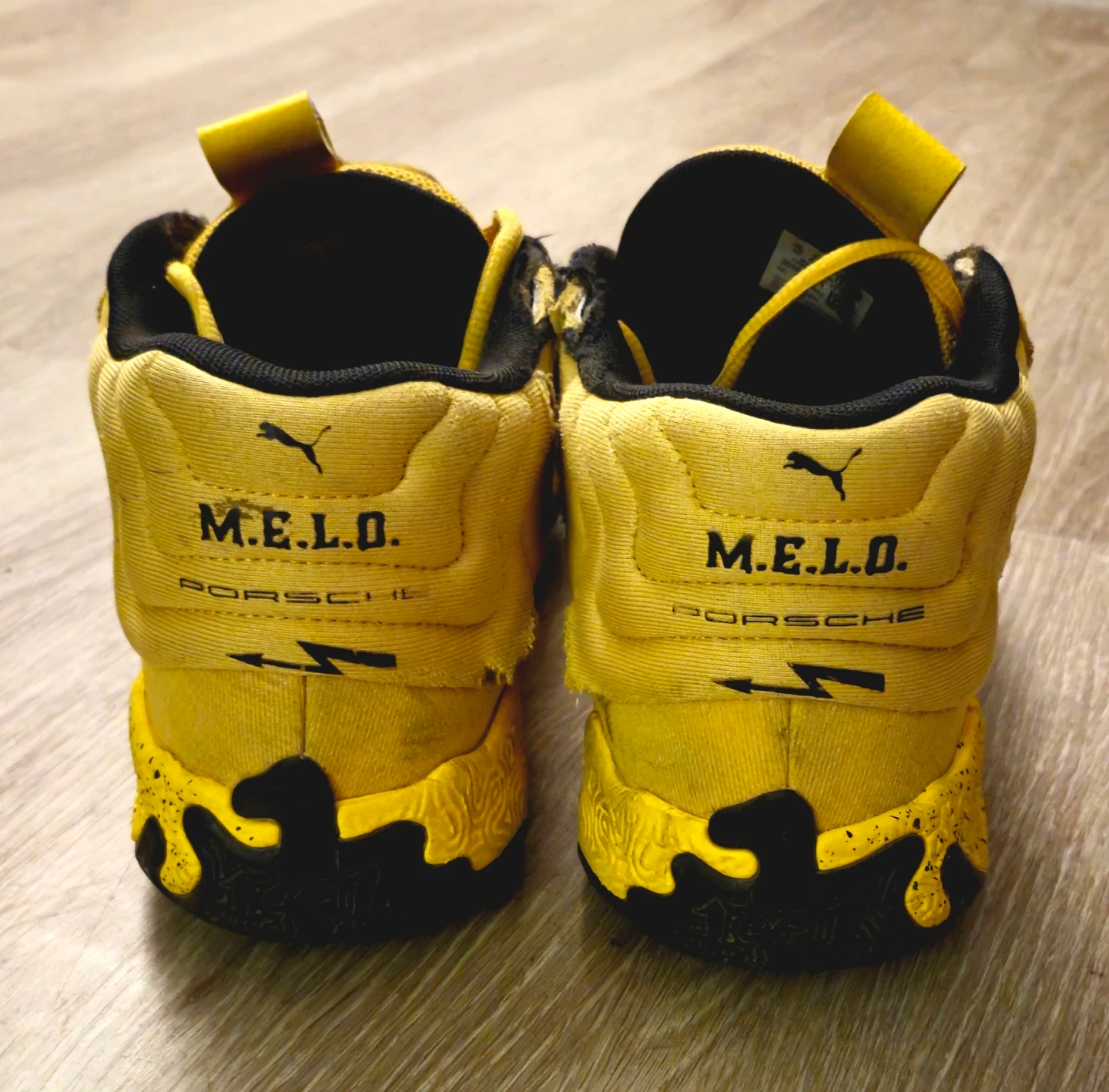 Step into style with these Puma Porsche Legacy trainers, a US size 11, showcasing a vibrant yellow design. Please note, these shoes are in used condition, with some tearing on the sides, as shown in the pictures. Don't miss the chance to own a unique pair!