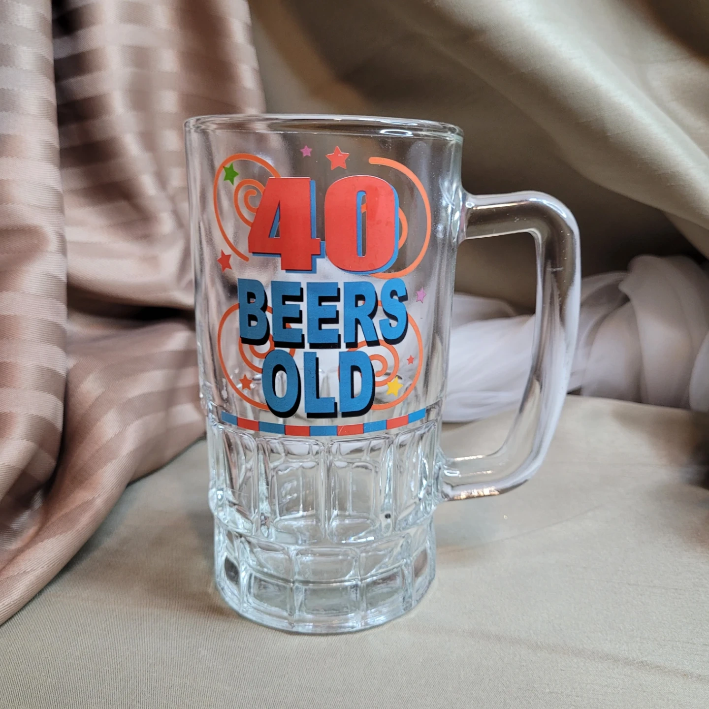 6 1/4" x 3 1/2" Glass Beer Mug - 40 Beers Old- Mug
