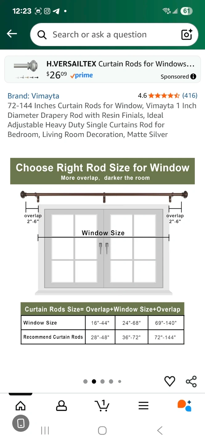 Selling a Vimayta curtain rod in matte silver. It's adjustable from 72 to 144 inches.