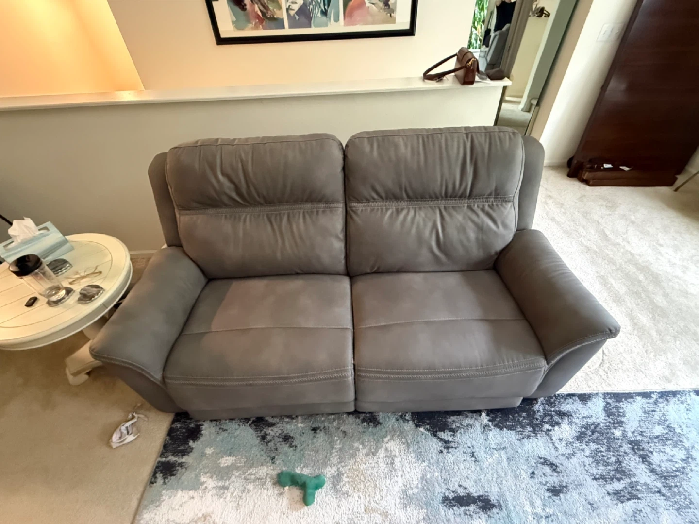 Selling a comfy gray power reclining loveseat. It's perfect for relaxing and enjoying movies! The loveseat is in good condition and ready for a new home