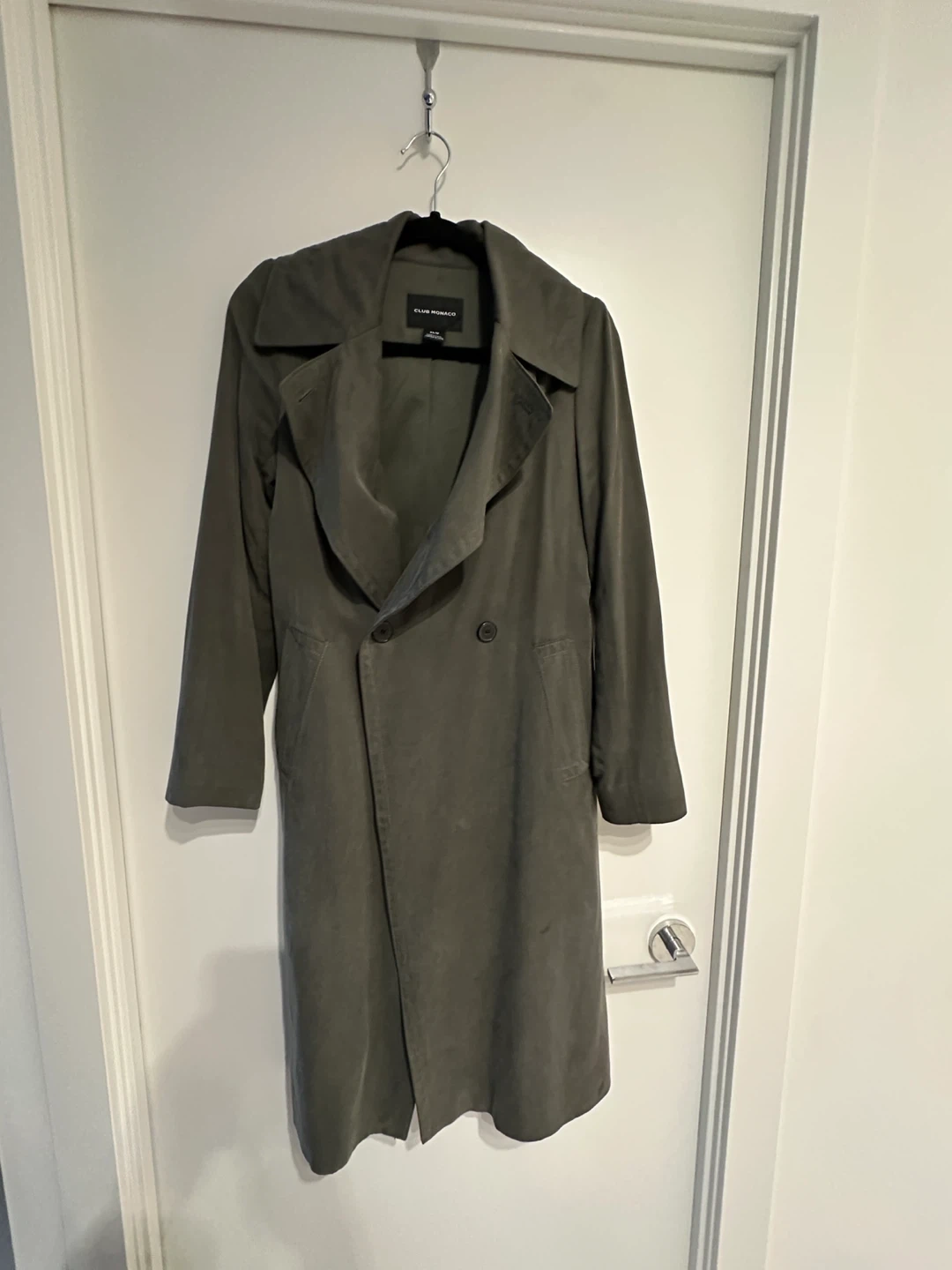 Selling a gently used Club Monaco trench coat in size XS. It's a stylish and versatile piece, perfect for layering during the cooler months. The coat is in great condition and ready for a new home!