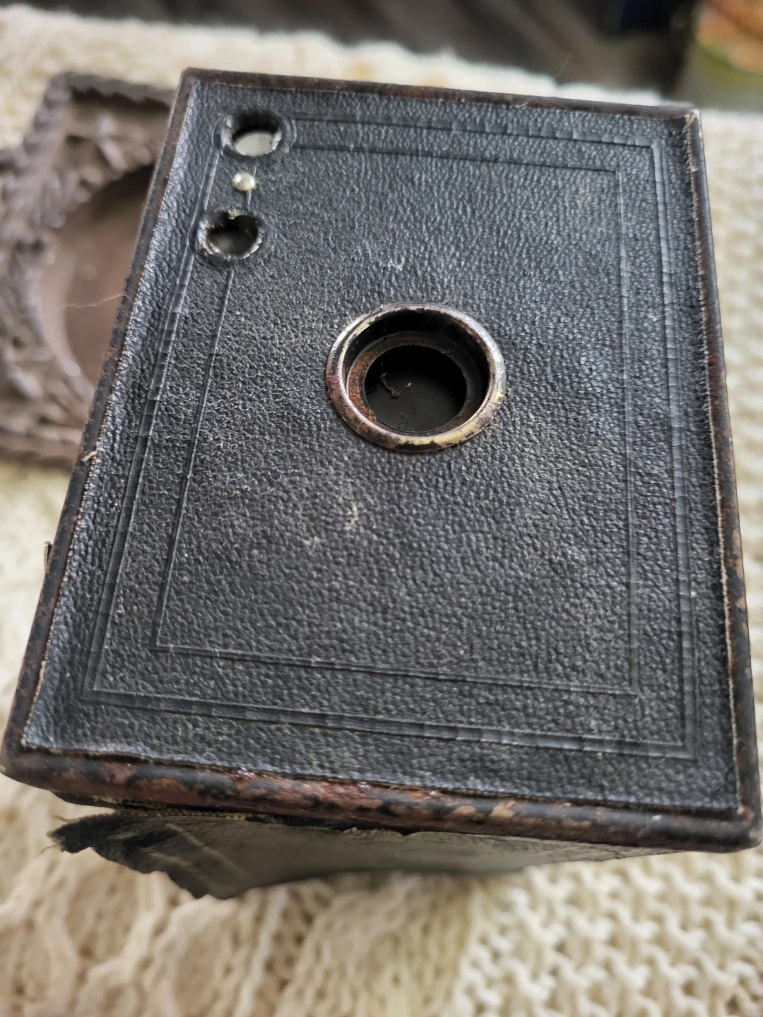 Selling an antique box camera. It shows some signs of wear and age, but it's a really neat piece of history! It would look great as a display piece for vintage camera collectors