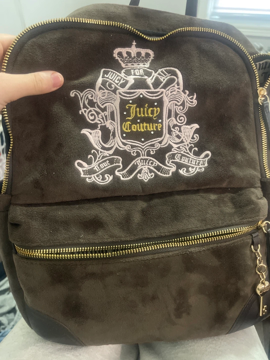 Selling a cute Juicy Couture backpack! It's a brown colour and features the iconic Juicy Couture logo. Great for carrying your everyday essentials in style!
