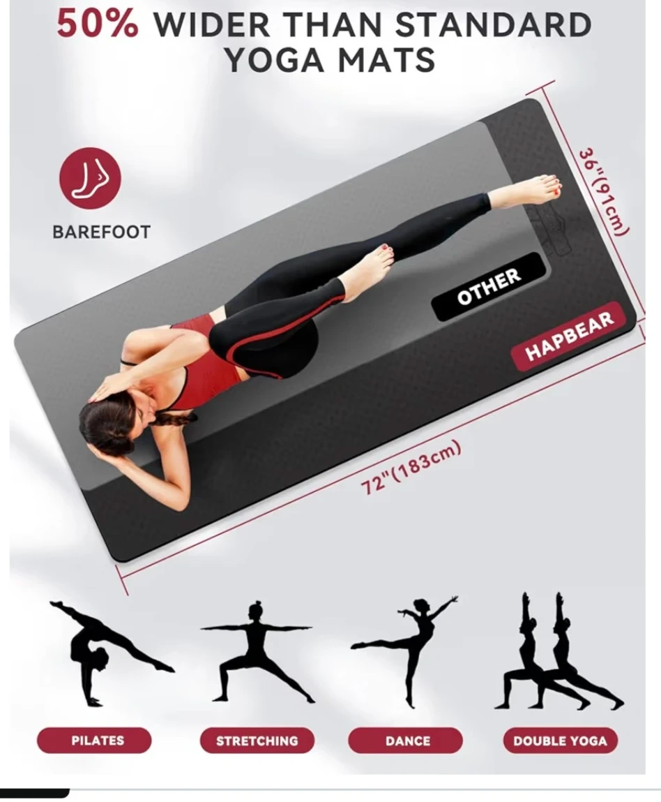 Get your fitness on with this Hapbear yoga mat! It comes with a handy storage bag, making it lightweight and easy to carry around. Plus, you'll get 5 TPE resistance bands for stretching and toning. The mat itself is waterproof and easy to clean, so you can keep it fresh after every use. It's 6mm thick for high rebound and ultimate comfort, protecting your joints during workouts. The double-sided non-slip surfaces enhance grip for hands and feet, and the wave pattern on the bottom prevents slipping
