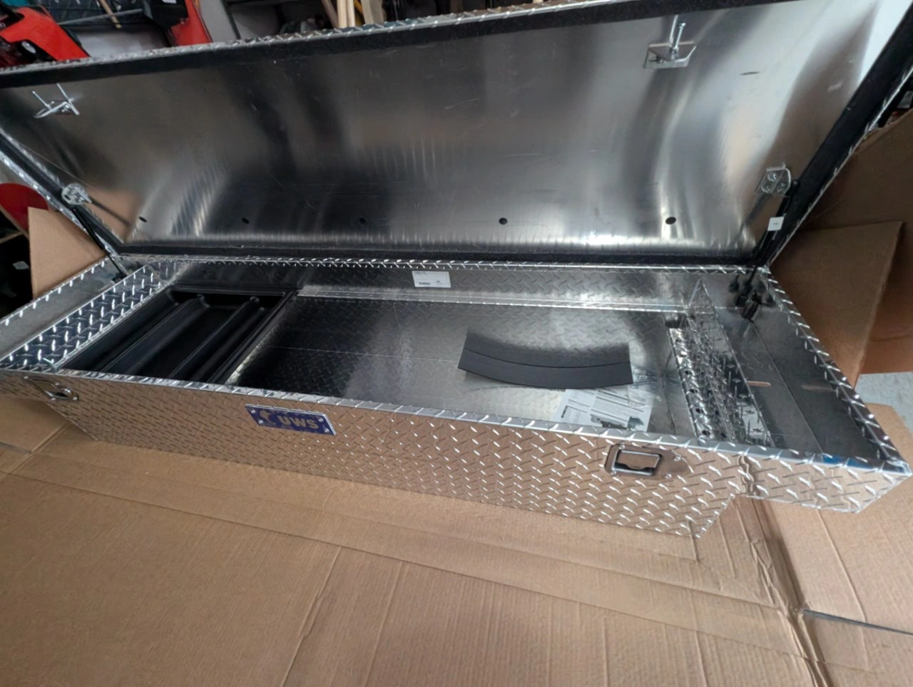 Selling a UWS truck bed toolbox. It's made of durable aluminum and in great shape! Perfect for keeping your tools and equipment secure and organized in your truck bed