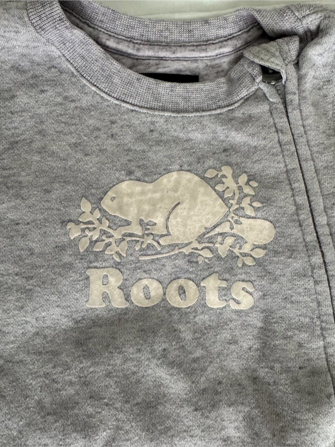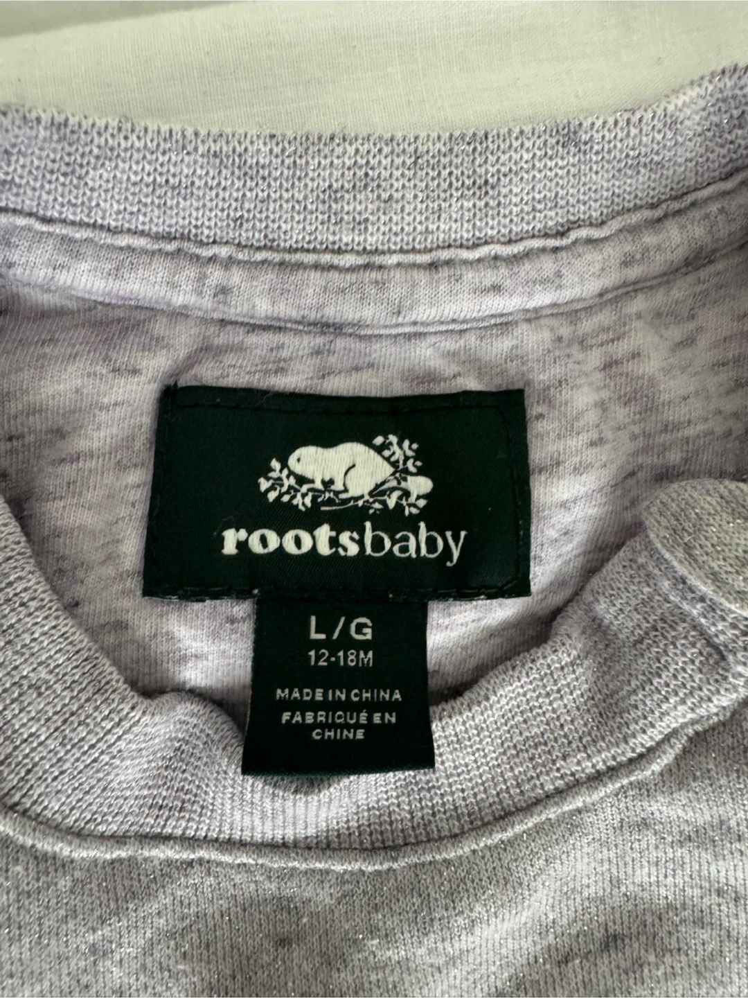 Selling a gently used Roots Baby onesie in size L/G, which fits 12-18 months. It's a super cute and comfy outfit for your little one. The onesie features the classic Roots beaver logo. Perfect for keeping your baby cozy.
