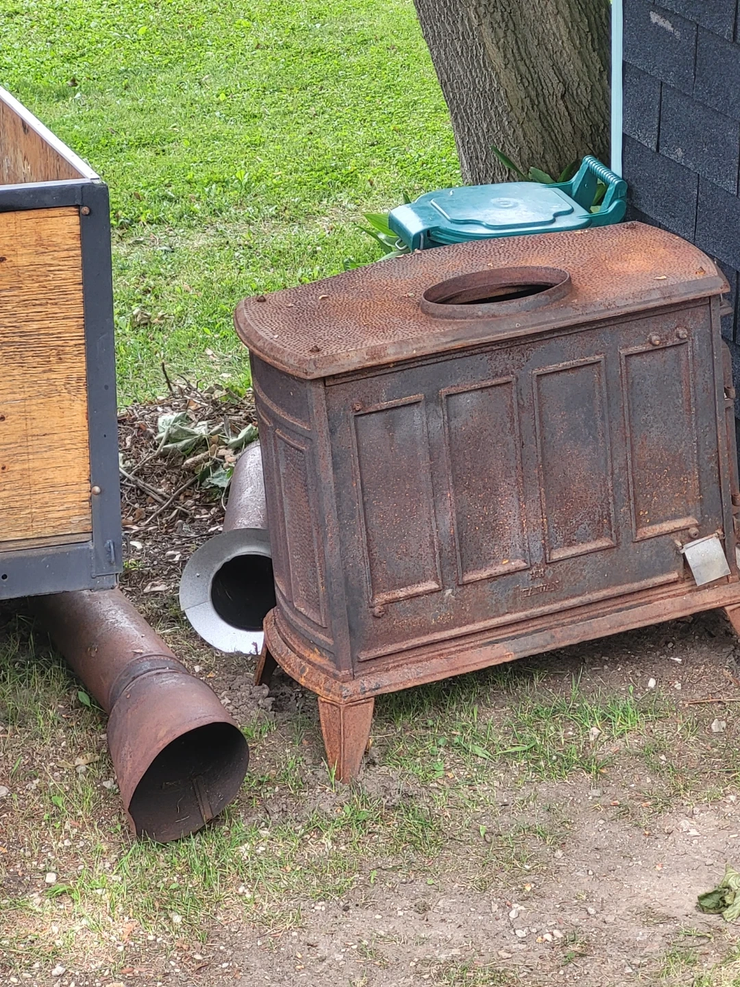 Selling an antique wood burning stove. It shows signs of age and use, with some rust visible. It could be a great restoration project or a unique decorative piece for your home or cottage. This has been used as of late heating a farm utility shed holding 8 combines etc. It comes with piping, and really throws the heat out. Needs some tlc but 100% works amazing