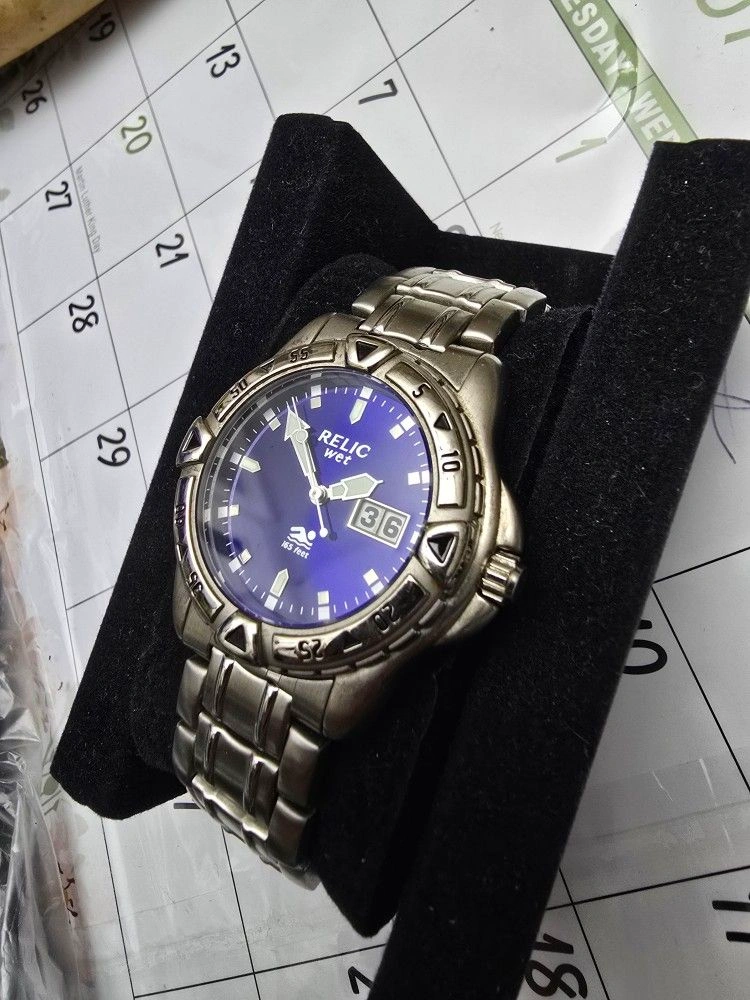 Relic Wet Watch Mens Blue Dial Day Date ZR11538 NIB