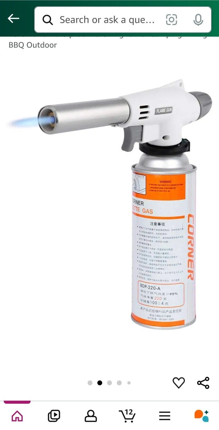 It uses a butane cartridge with a notched collar. The item is a unit type and the package includes one butane torch gun. The model is adjustable flame gun butane blow torch with ignition and it is manufactured in China. This product is suitable for those who need a reliable and efficient heat source for their projects.