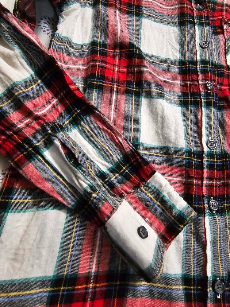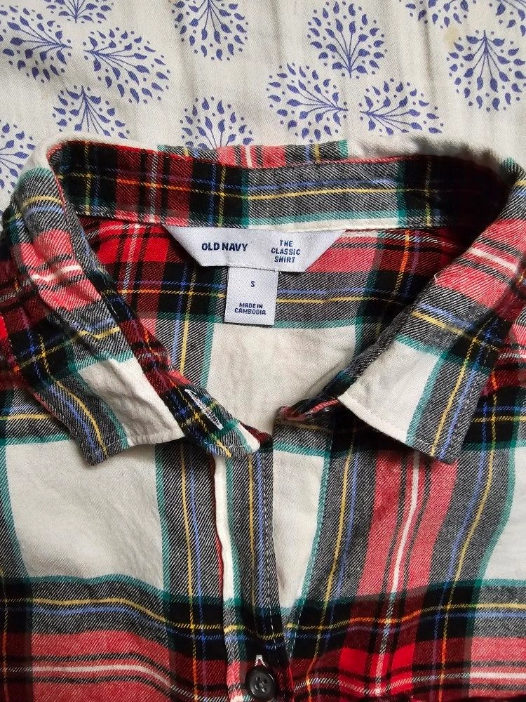 This Old Navy boy's shirt is a classic plaid shirt in size S. It features a button-down collar and long sleeves, with a flannel fabric type that makes it suitable for all seasons. The shirt is machine washable and has a medium fabric wash, ensuring that it will last for a long time.