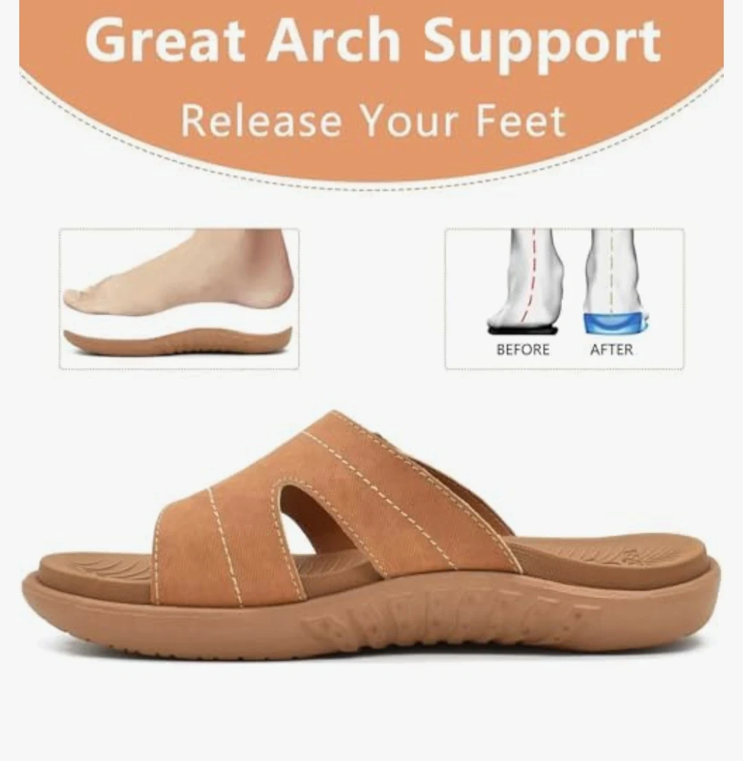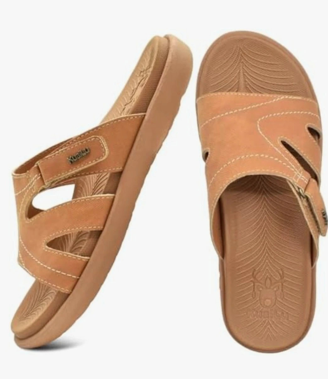Size 7-KUAILU Womens Fashion Orthotic Slides Ladies Lightweight Athletic Yoga Mat Sandals Slip On Thick Cushion Slippers Sandals With Comfortable Plantar Fasciitis Arch Support
