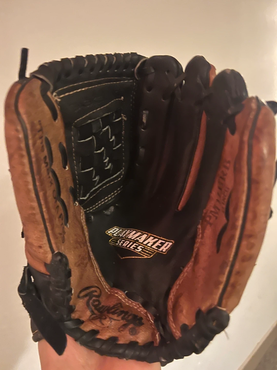 70Here's a Rawlings Plainmaker Series baseball glove! It's in good condition and ready for the next game. The glove features the classic Rawlings logo and design.