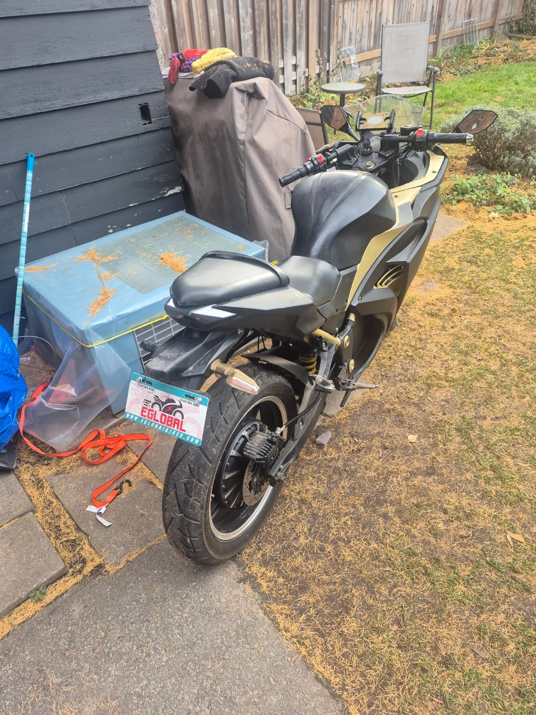 Brand new and without mod they go for about 5500$ and are half the bike. The battery is a lithium 72v 100ah and is less then a year old so has years before its ratted to start to lose power storage capability. Only issues are needs breaks, 1 signal light and a few missing screws. But nothing seriously wrong and is more then ready to ride. I use it everyday. Selling as is. Reason for sale to help pay for my dogs surgery