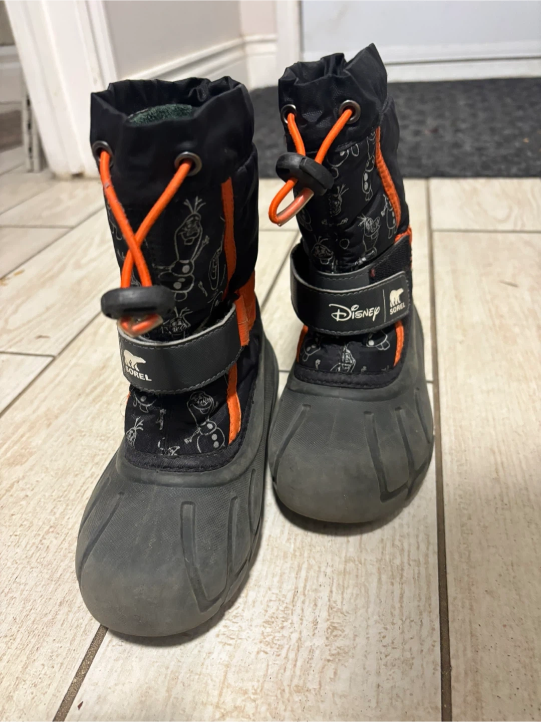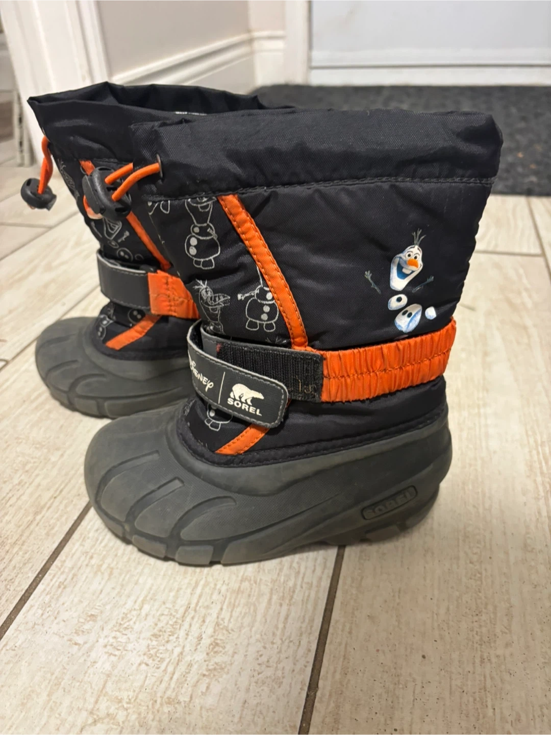 Keep your little one warm with these adorable Sorel snow boots! They feature a fun Frozen design with Olaf. The boots are a toddler size 11 and in great condition for winter adventures