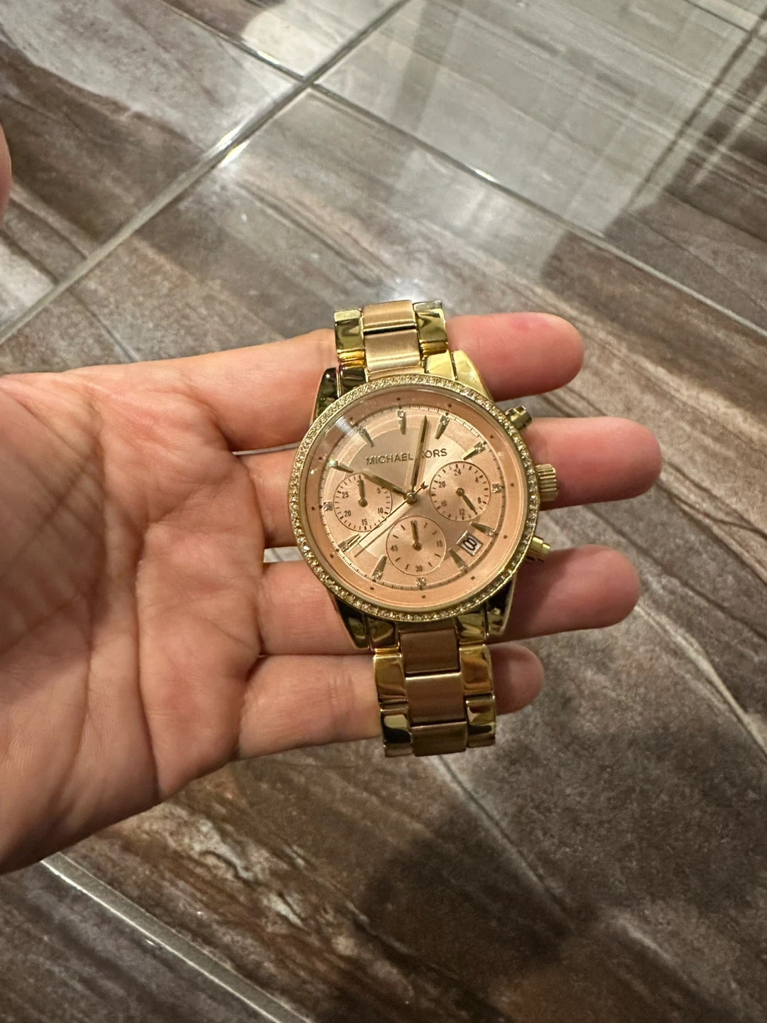 Selling a beautiful Michael Kors women's watch in 2 tone (gold/rose gold) It has a stainless steel back and would make a great addition to any outfit