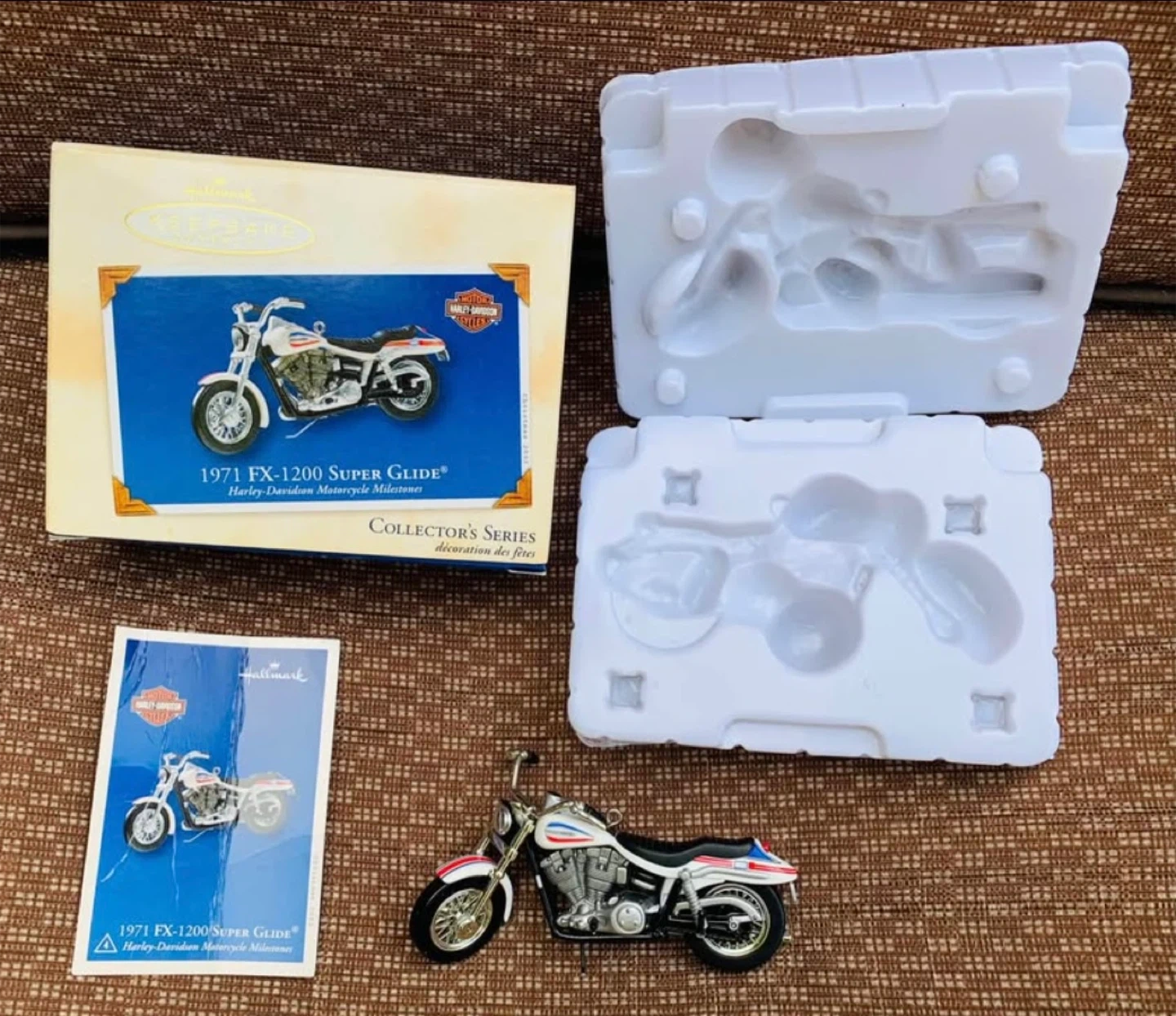 Selling a Harley-Davidson 1971 FX-1200 Super Glide motorcycle miniature from the Collector's Series! It comes with the original box and packaging