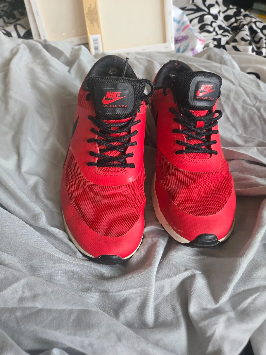 Selling a pair of Nike Air Max Thea sneakers in a vibrant red colour! They are in US size 8.5. These shoes have a sleek design and are perfect for everyday wear or workouts. Check out the photos for a closer look!
