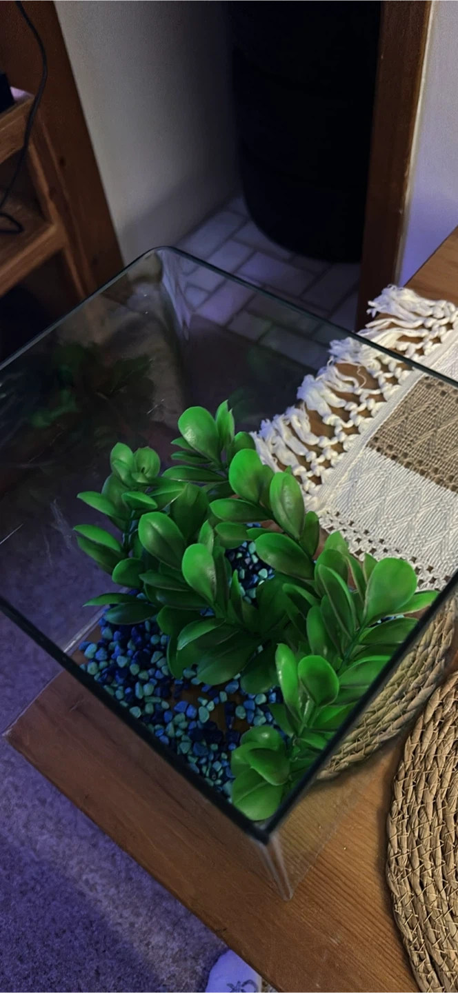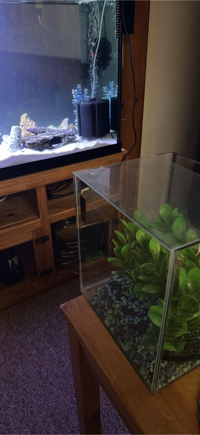 Selling a Penn-Plax Vertex Aquarium tank. It's a 2.7-gallon tank, perfect for a small setup. Was used a beta tank comes with lid rocks two plants might still have the filter have to take a look around last picture shows it at the store an what I originally paid for it