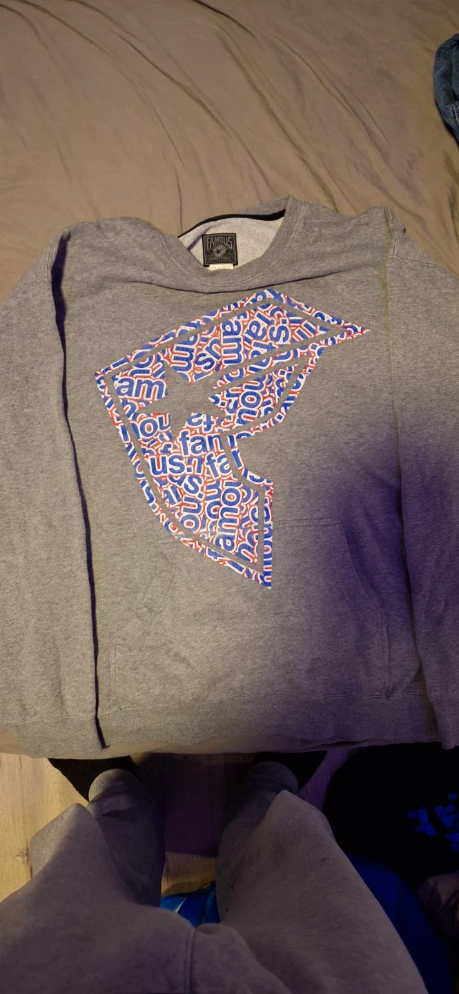 10Selling a grey sweatshirt from Famous Stars & Straps! It's in great condition and features the iconic logo on the front. Perfect for casual wear or layering up on cooler days