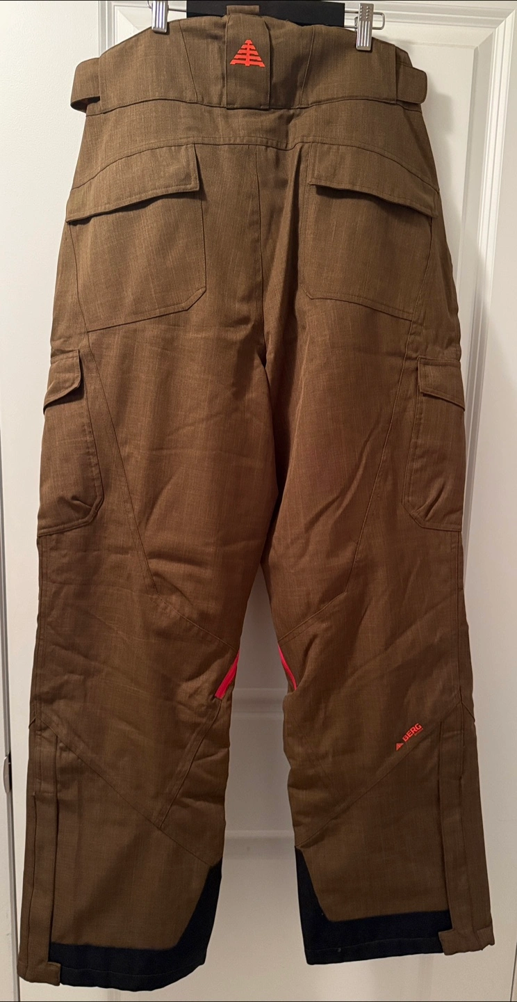 BERG Outdoor ski or snow pants in a size large! These pants are a stylish brown colour and come with suspenders. They have a few pockets for storage while you're out on the slopes. Perfect for keeping you warm and dry during winter activities. Cash only