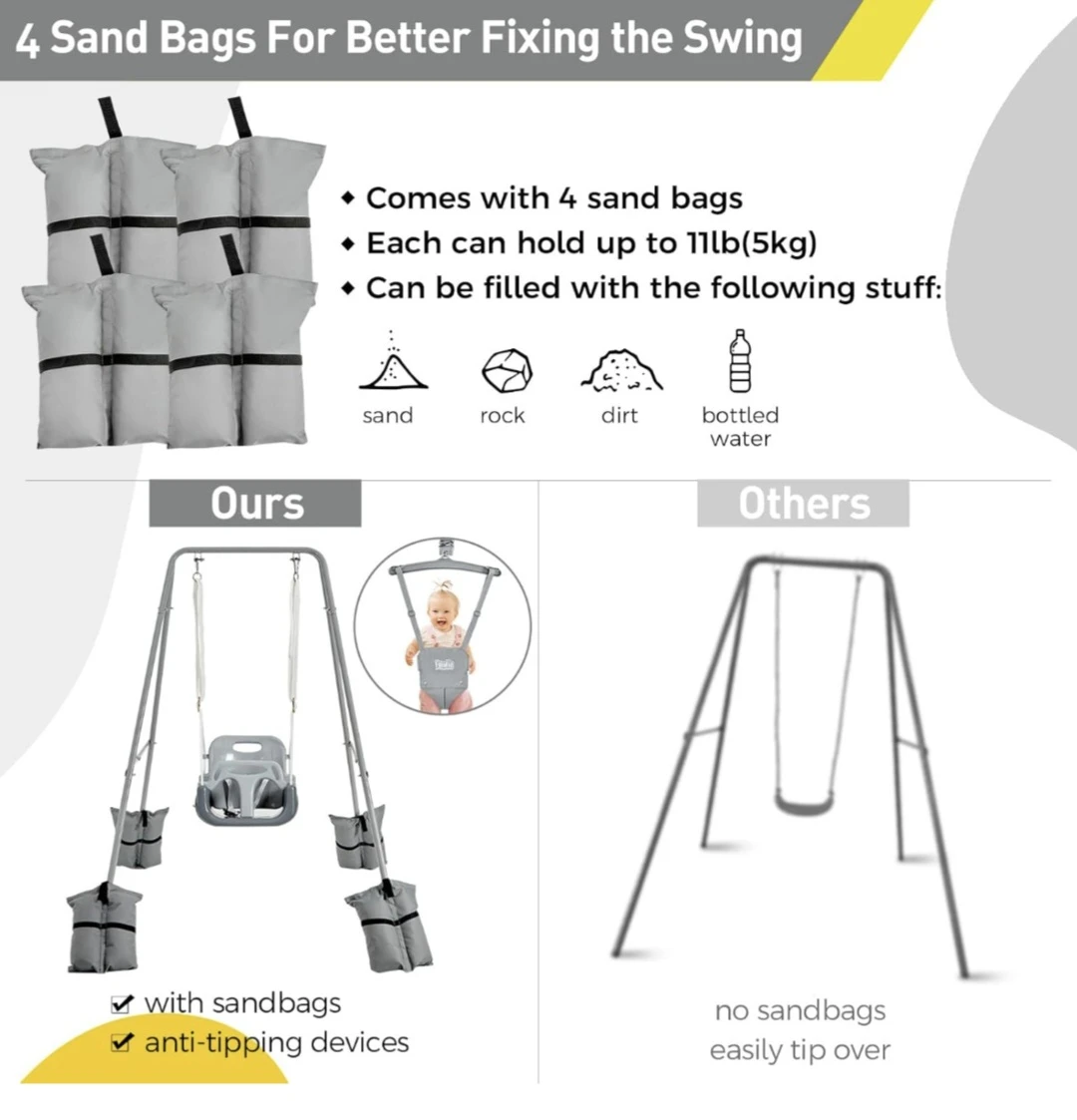 - Comes with 4 sand bags, each can hold up to 11lb (5kg)