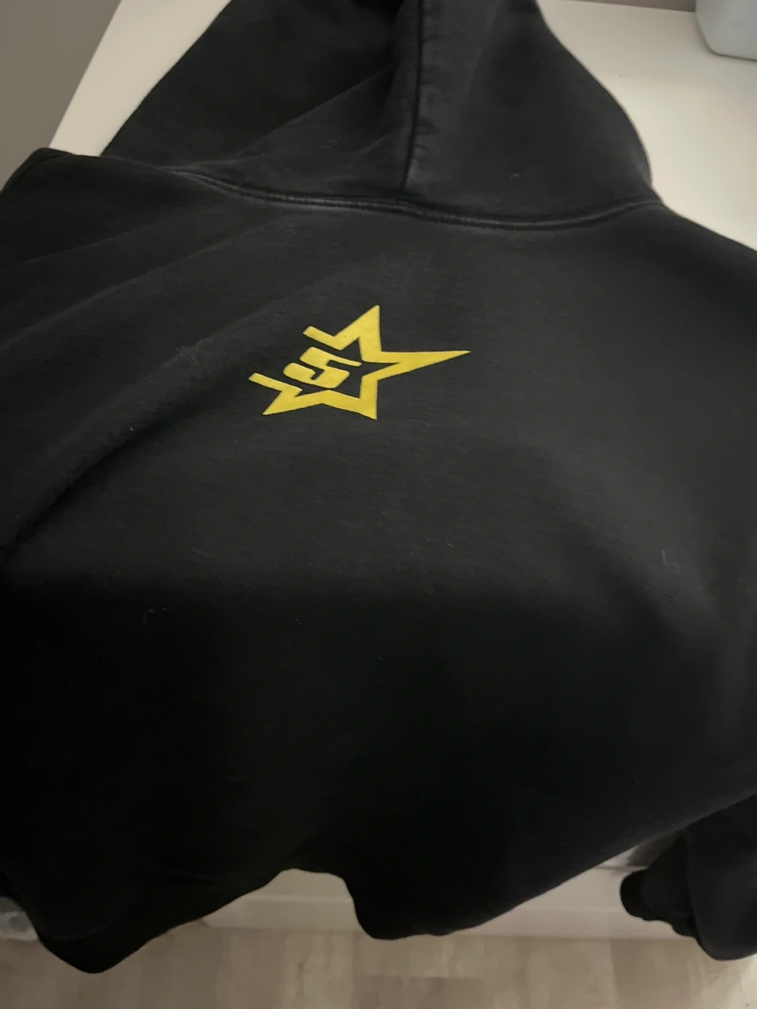 Selling a black Spider Worldwide hoodie. It features a unique design with 'nevermind the spider, here's the slime' text and a spiderweb graphic. Perfect for adding a stylish edge to your wardrobe!